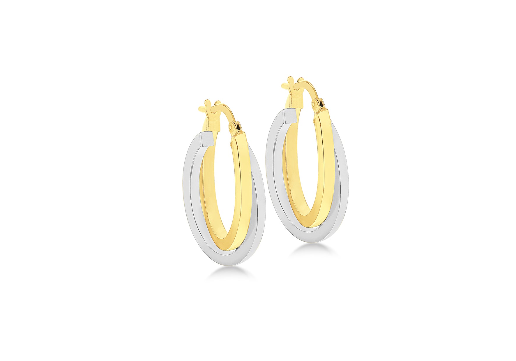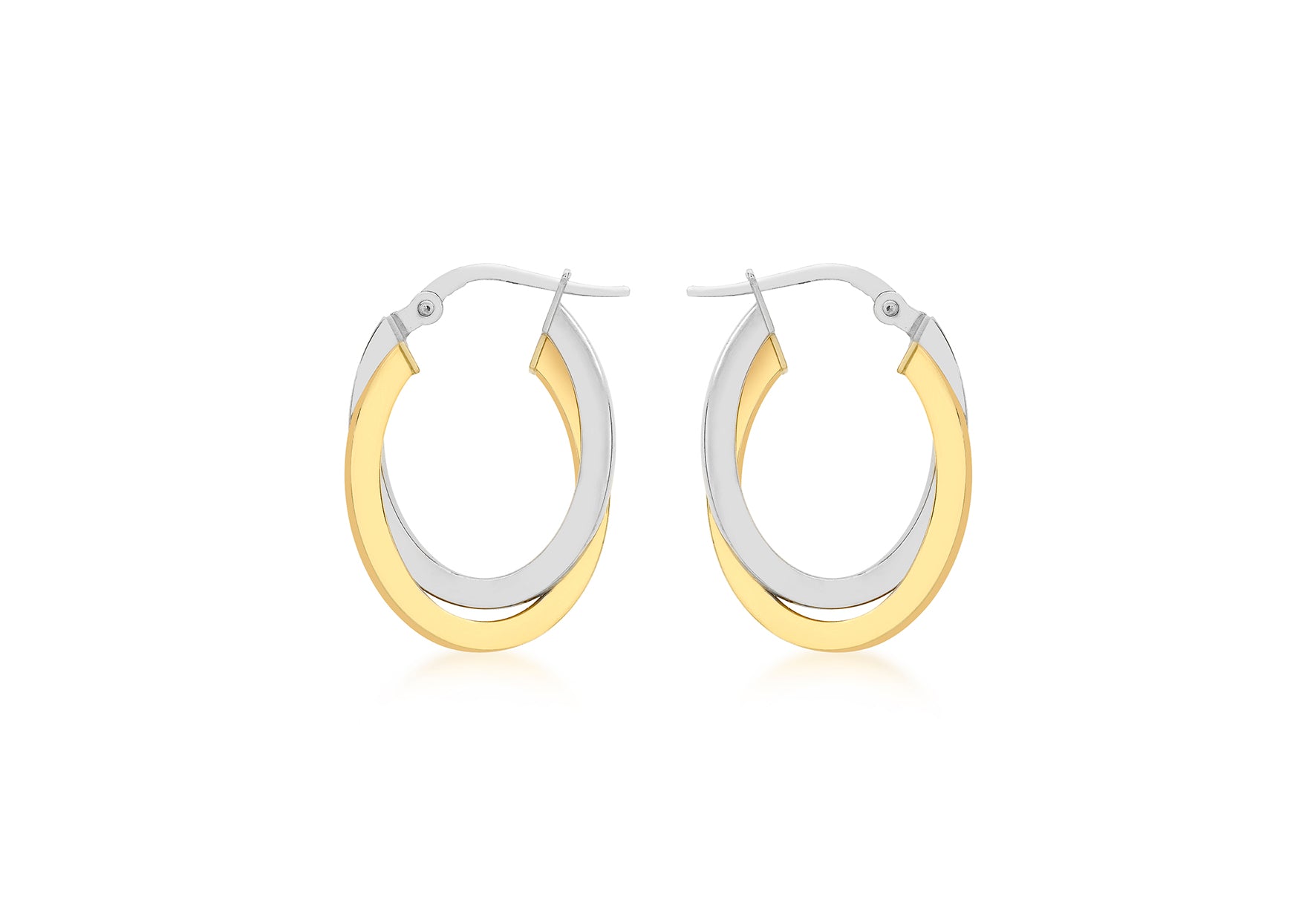 18ct Two-Tone Gold Oval Crossover Creole Earrings