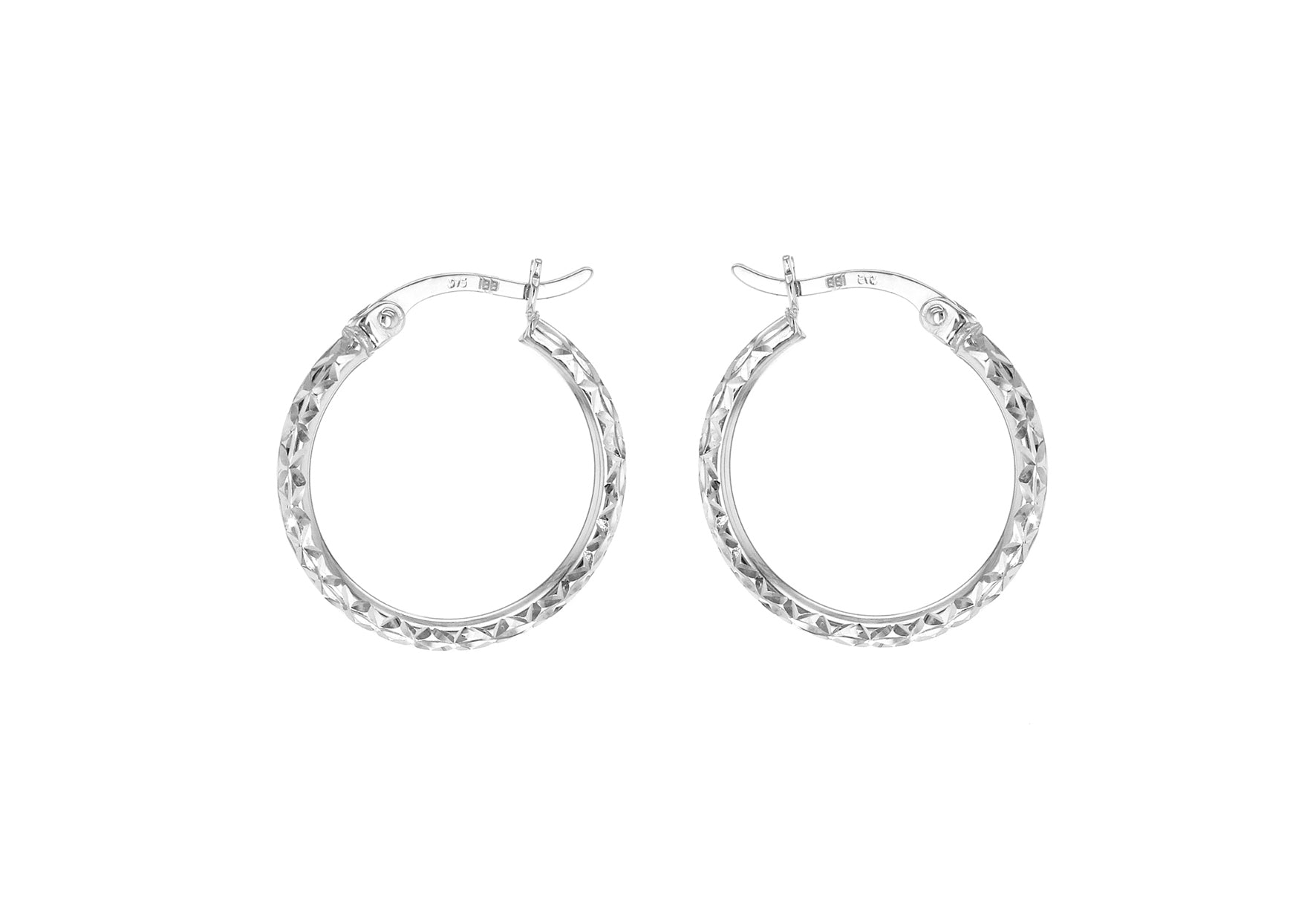 Diameter: 18mm Finish: Diamond Cut Fitting: Hinged Post Style: Creole Product Type: Earrings Metal Colour: White Metal: 18ct Gold