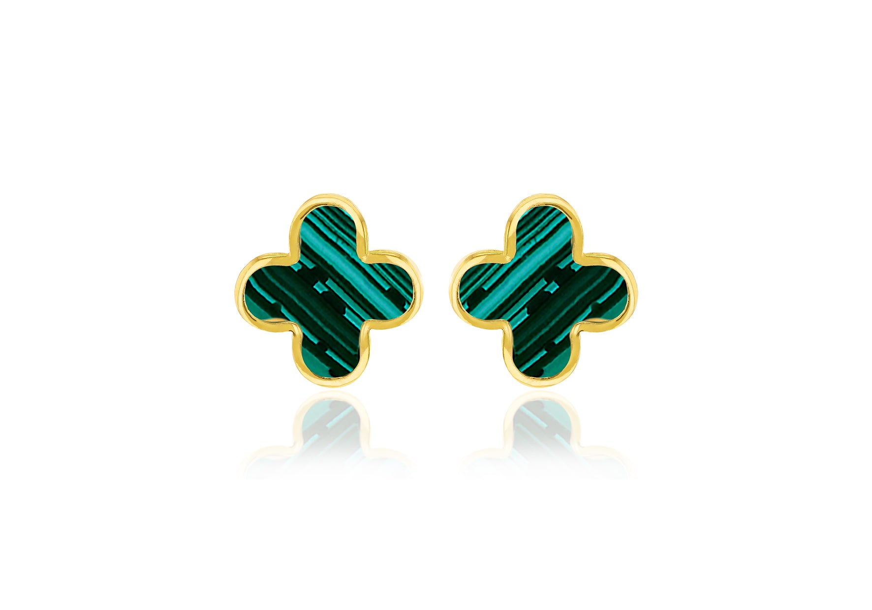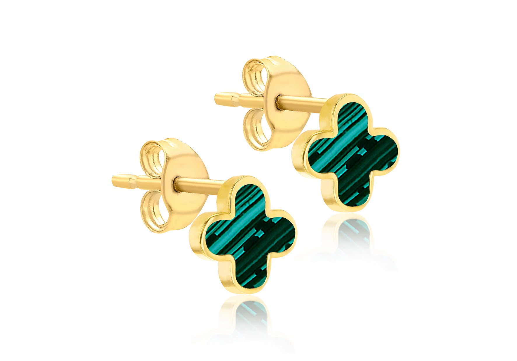 18ct Yellow Gold Malachite Petal Stud Earrings