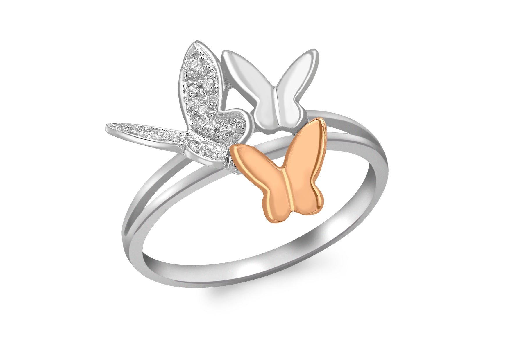 9ct Two-Tone Gold 0.05ct Diamond Butterfly Ring