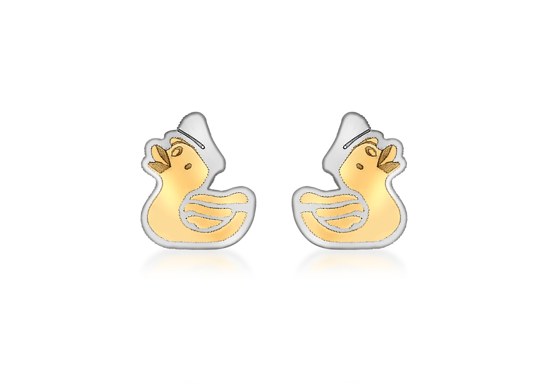 A charming fusion of whimsy and craftsmanship, these earrings bring a playful yet refined The detailed silhouette of each duck is formed in radiant yellow gold, while polished white gold accents add soft contrast and dimension. Compact and elegant, these studs sit delicately on the ear, perfect for adding a unique statement to everyday wear or gifting with character and charm.