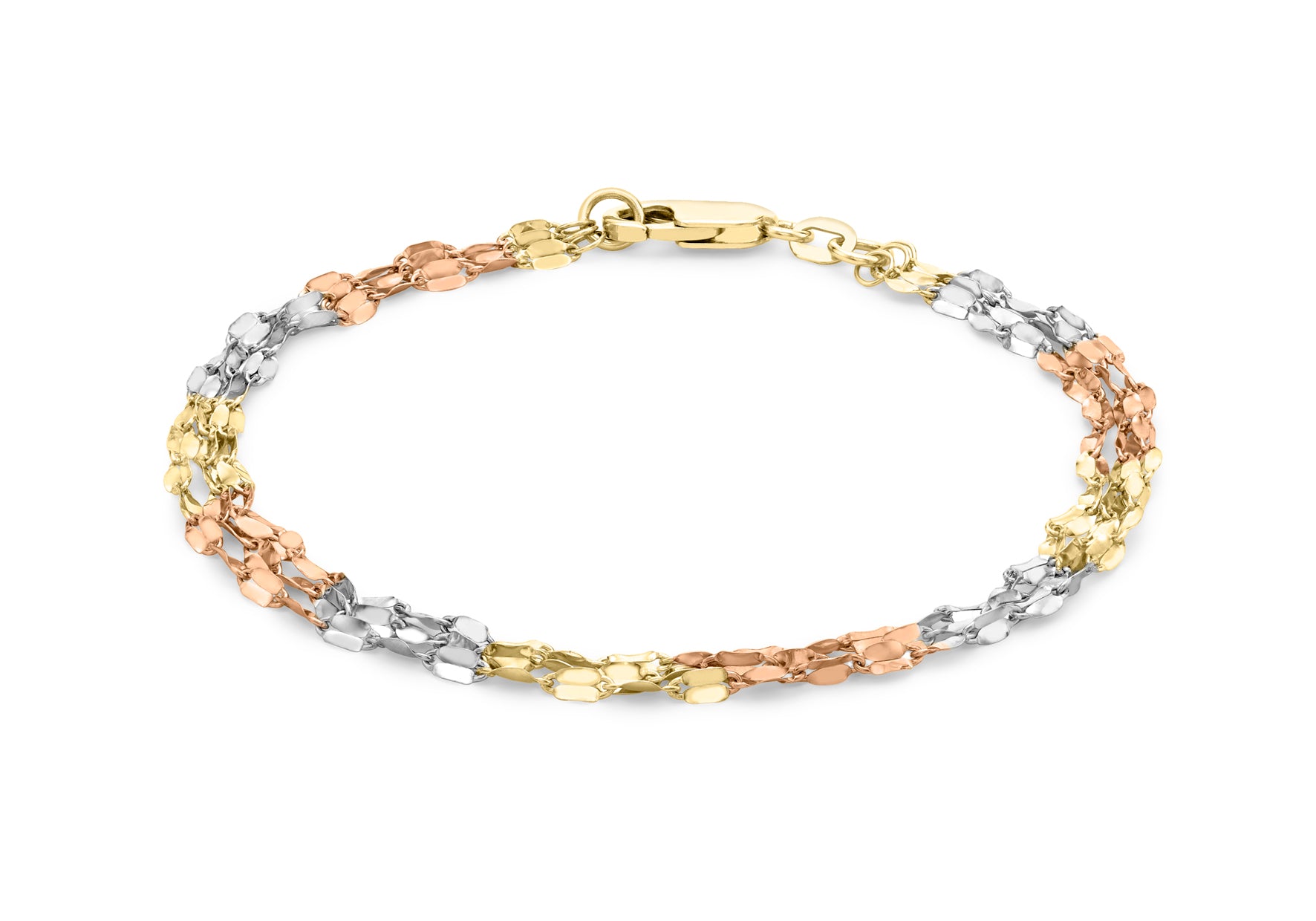 9ct 3-Tone Gold Tri-Strand Forzantina Chain Bracelet