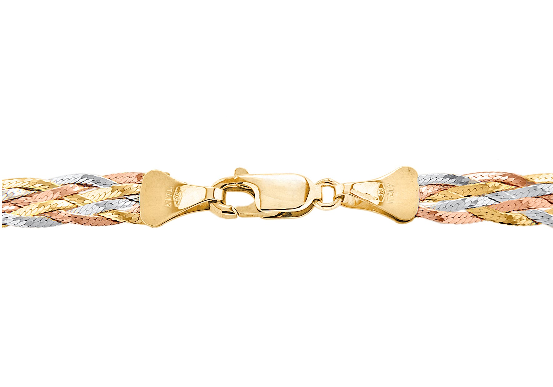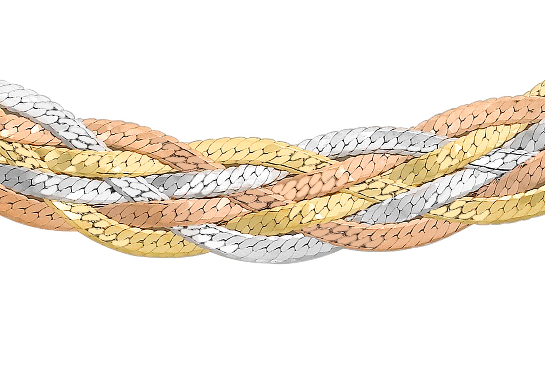 9ct Tri-Colour Gold Six Plait Herringbone Necklace
