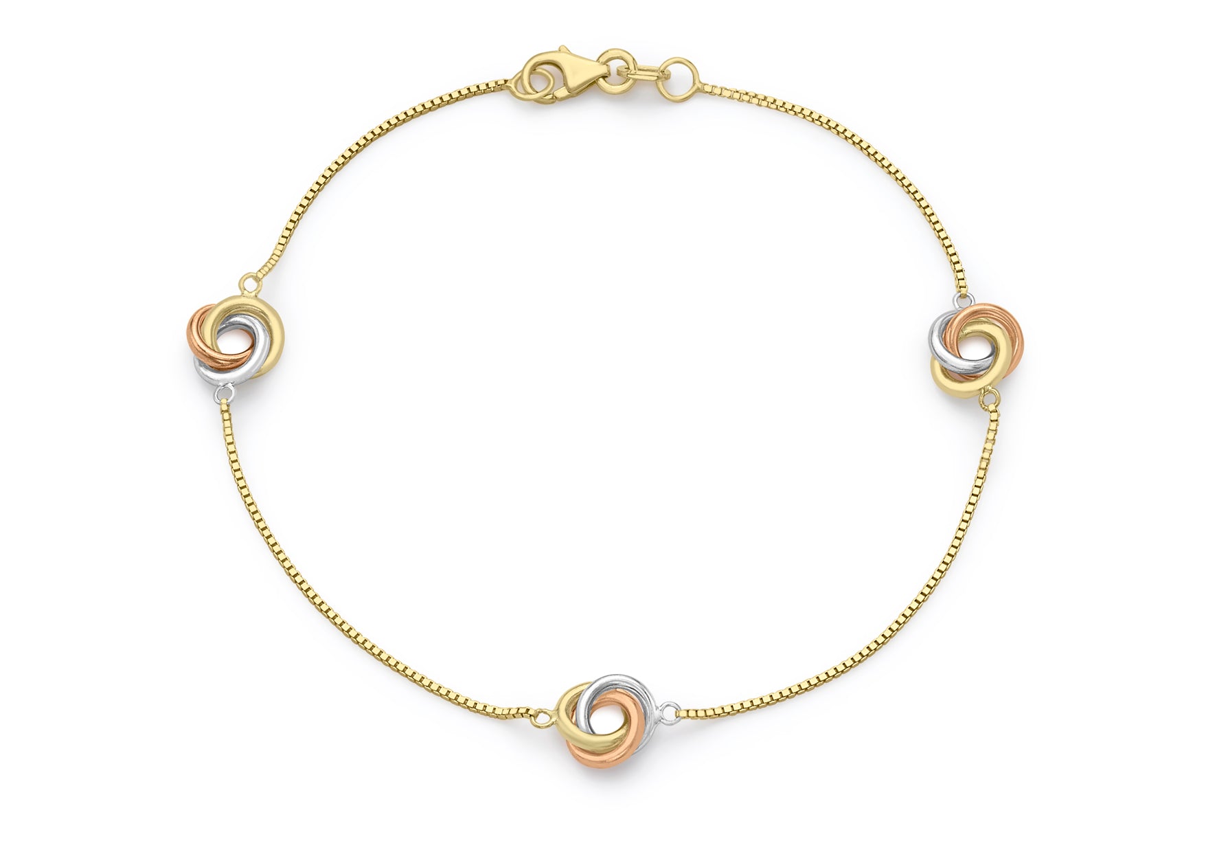 9ct 3-Tone Gold Triple-Knot Box Chain Bracelet