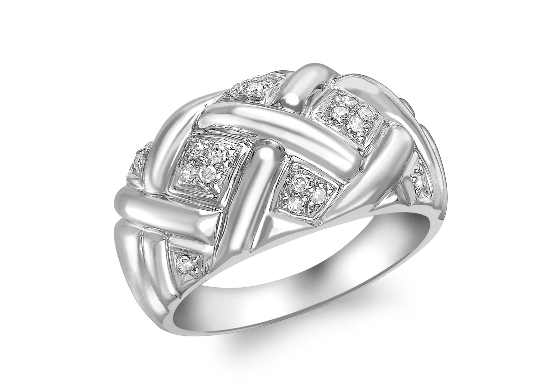 9ct White Gold 0.11ct Pave Set Diamond Lattice Ring