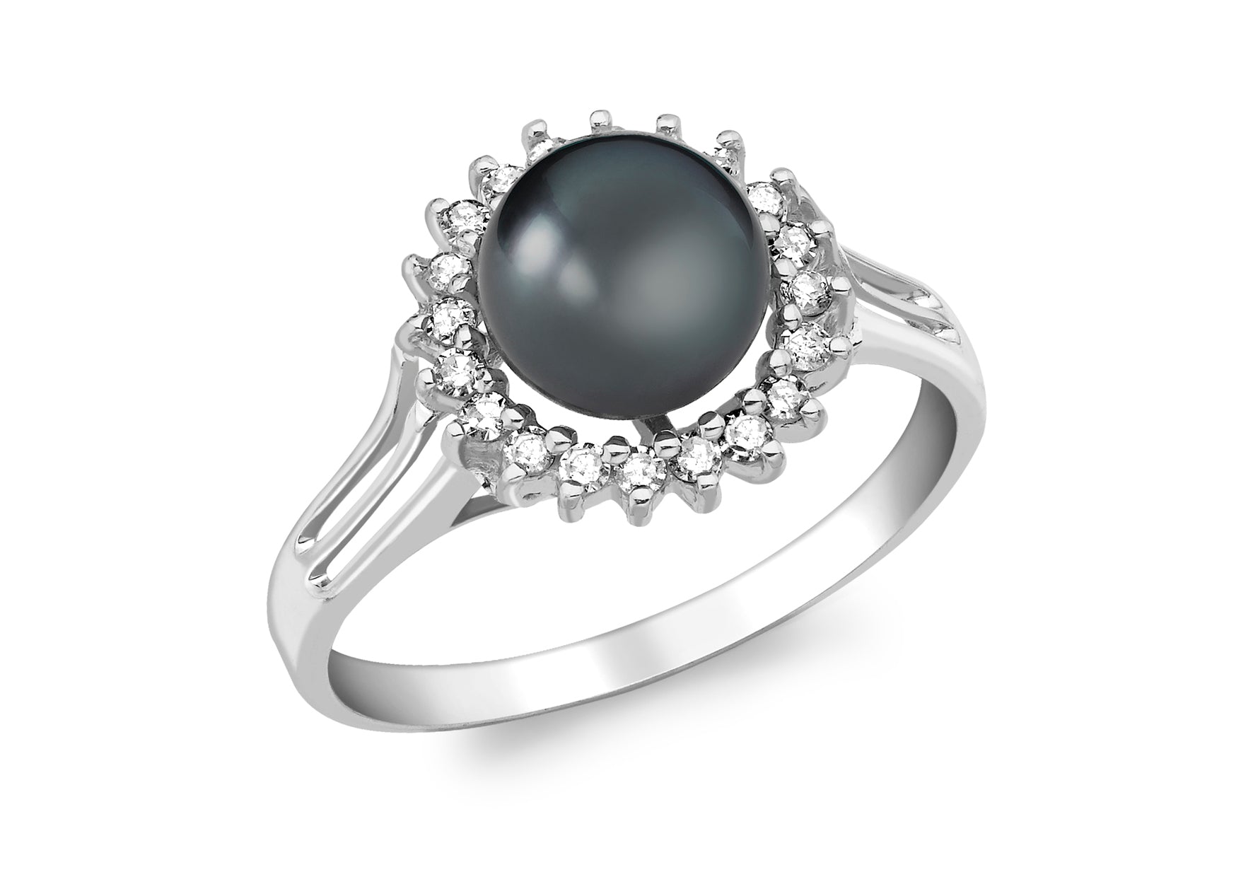 9ct White Gold 0.15ct Diamond and Grey Pearl Ring