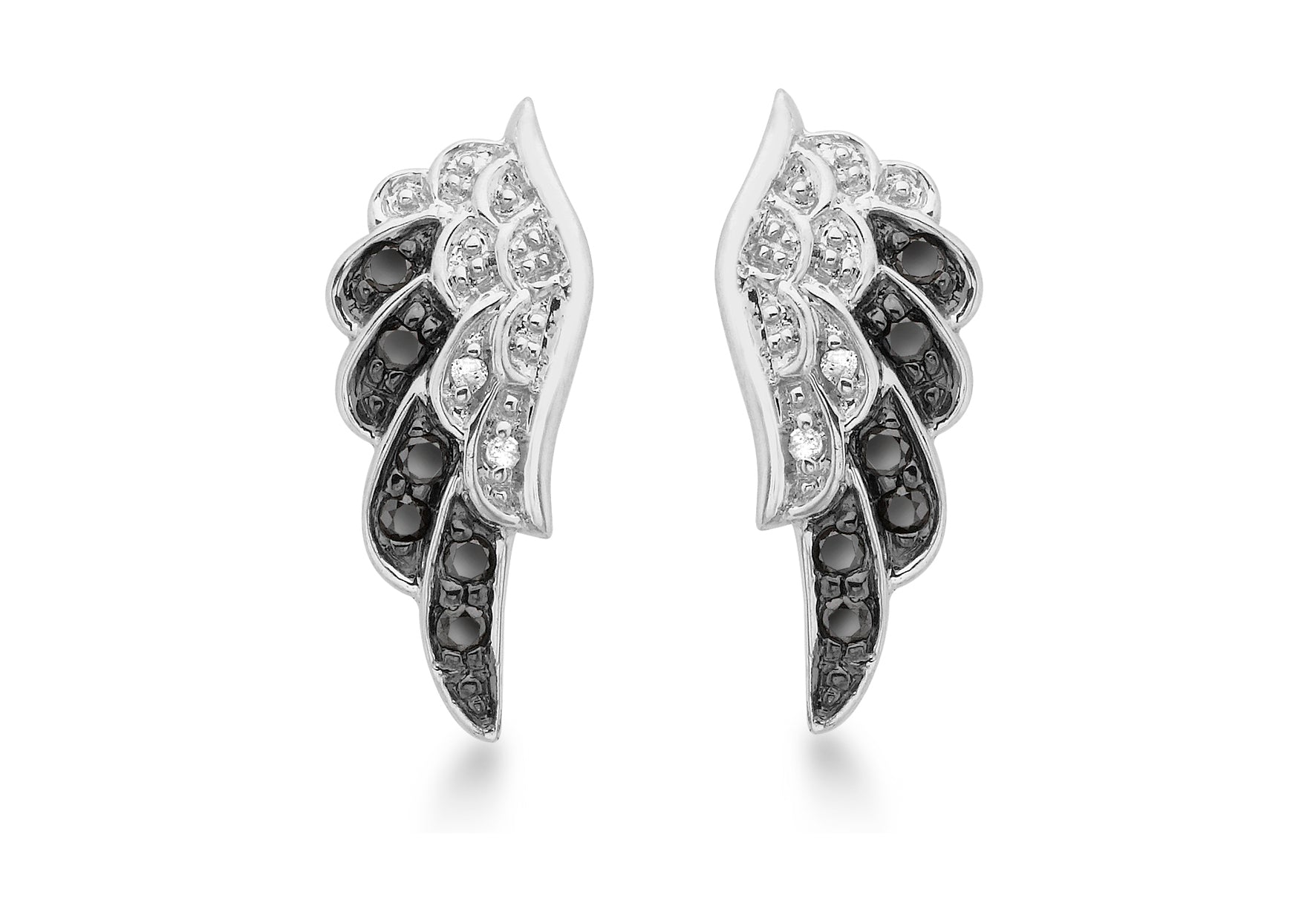 9ct White Gold 0.22ct Black and White Diamond Angel Wings Stud Earrings