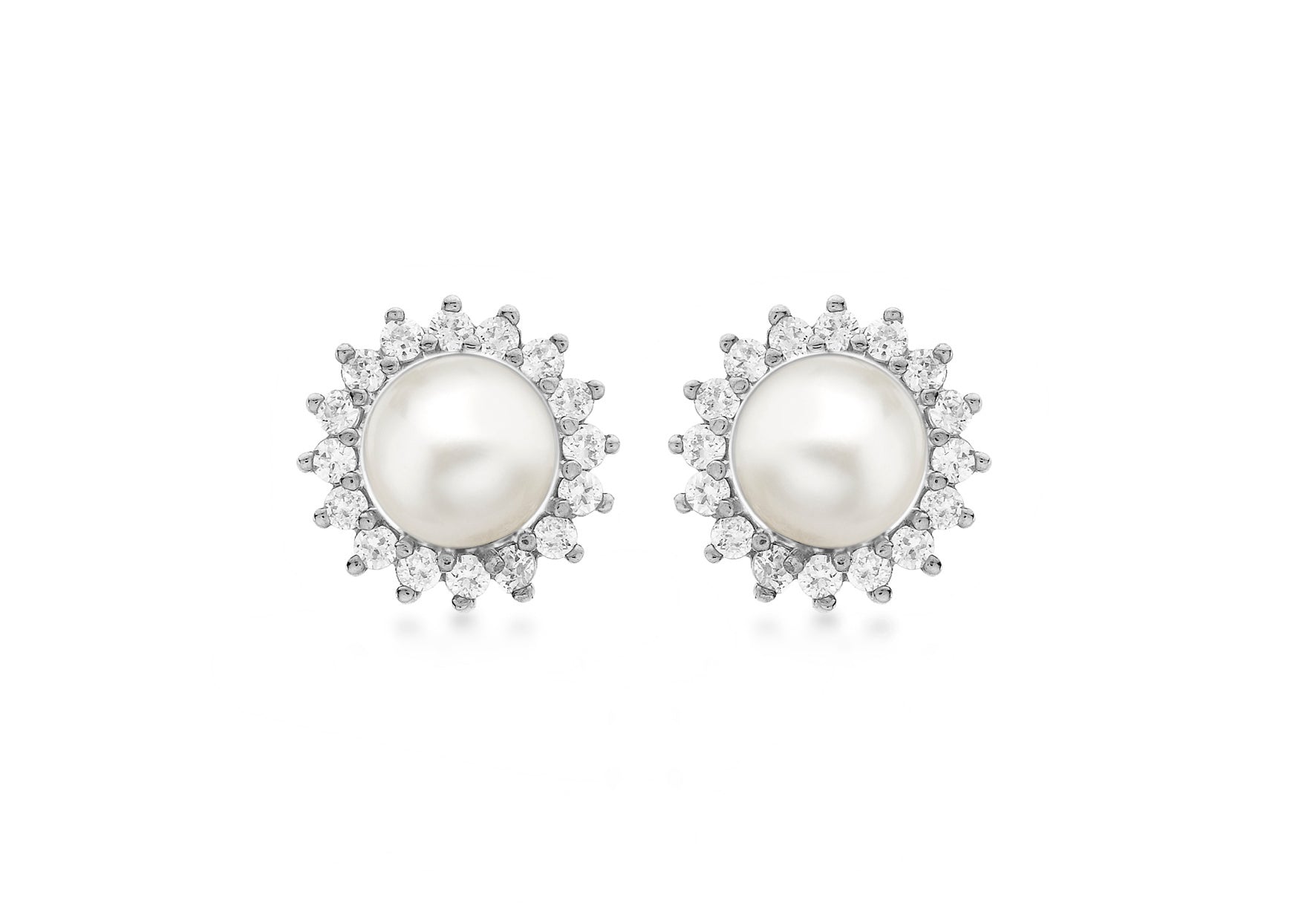 9ct White Gold 0.25t Diamond and Pearl Cluster 10mm Stud Earrings