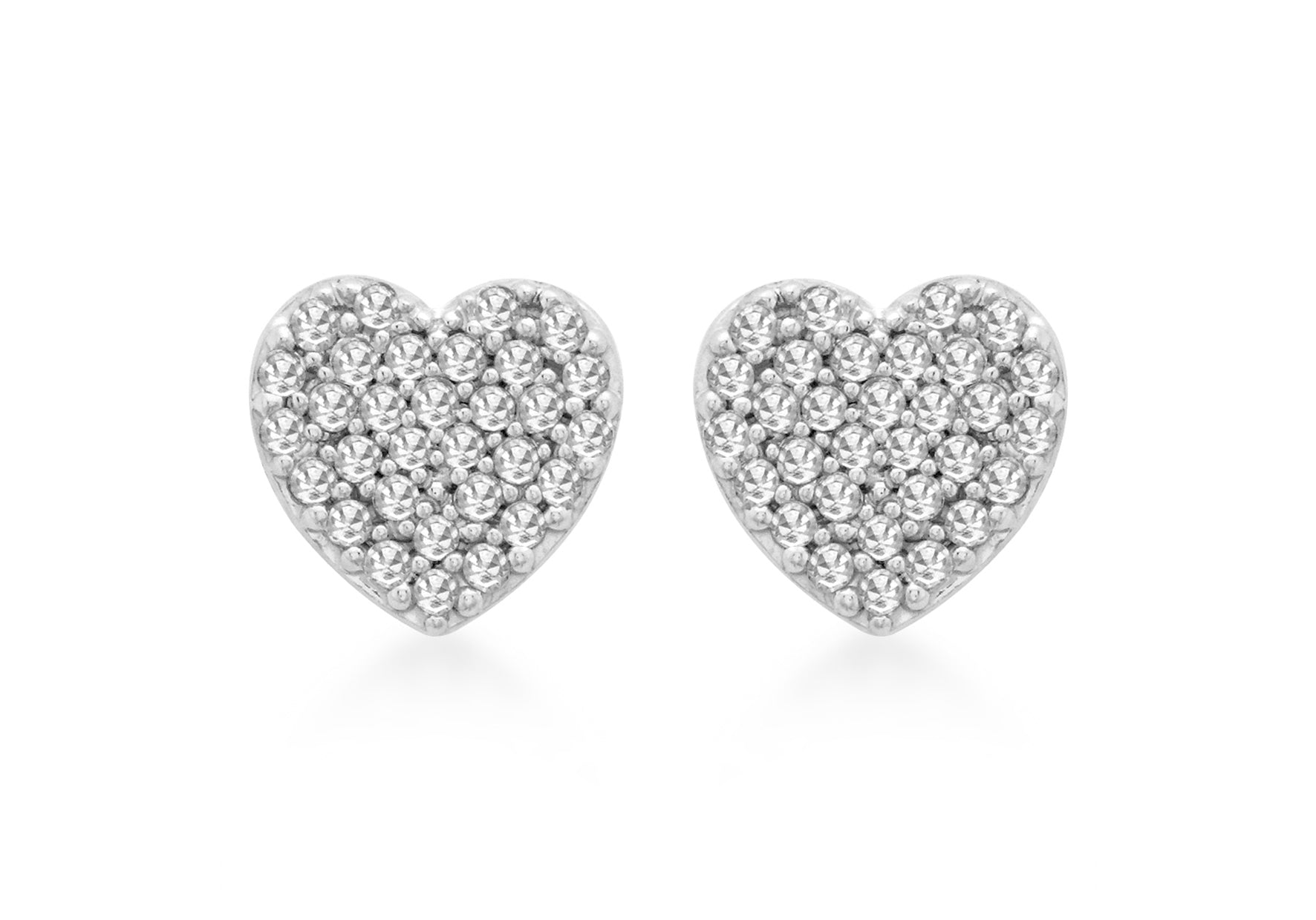 9ct White Gold 0.25ct Pave Set Diamond Heart Stud Earrings