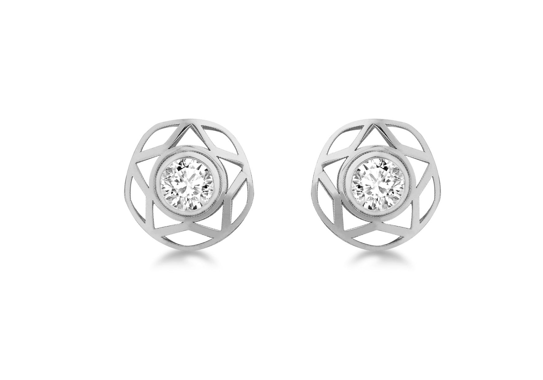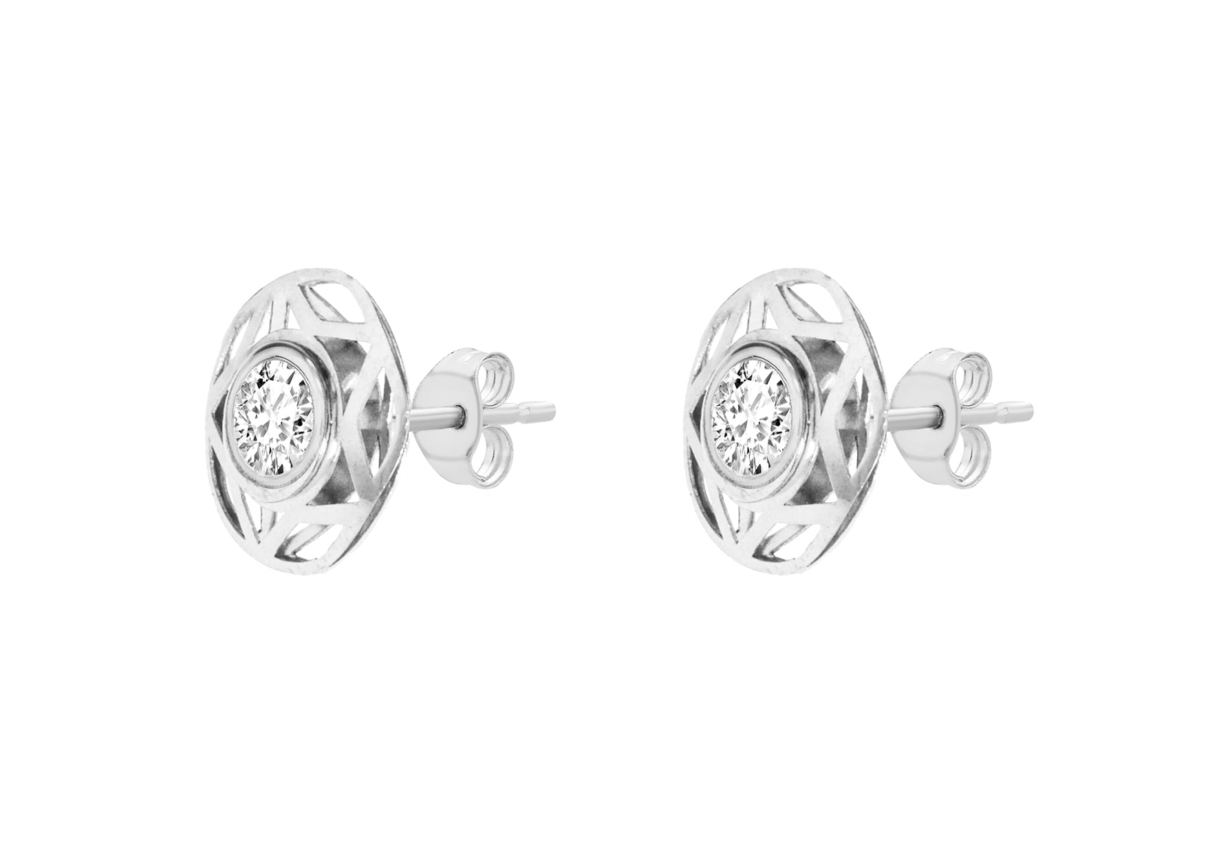 9ct White Gold 10mm Zirconia and Star Stud Earrings