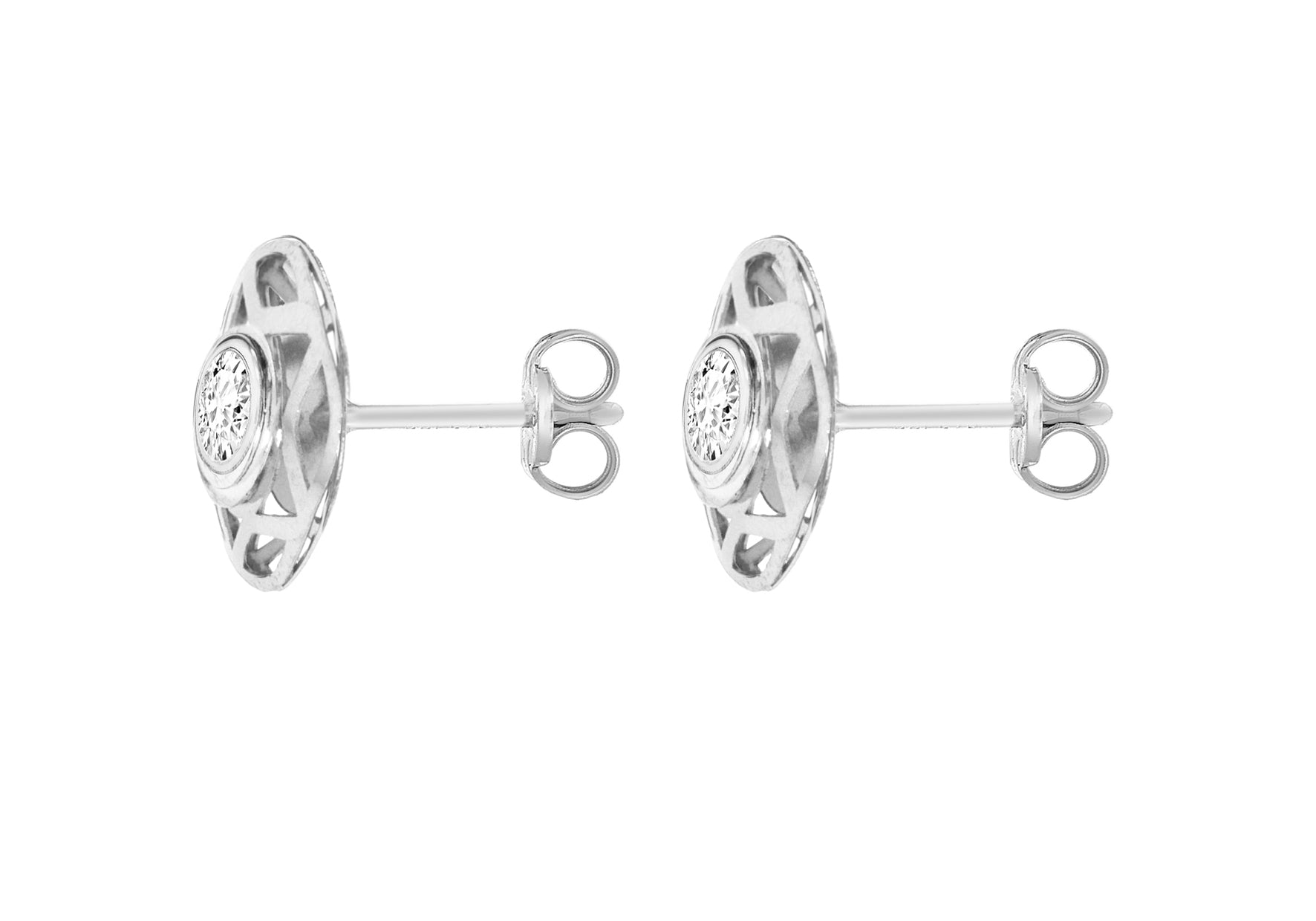 Diameter: 10mm Fitting: Post Stone Details: 5mm CZ Stone Style: Stud Product Type: Earrings Metal Colour: White Metal: 9ct Gold
