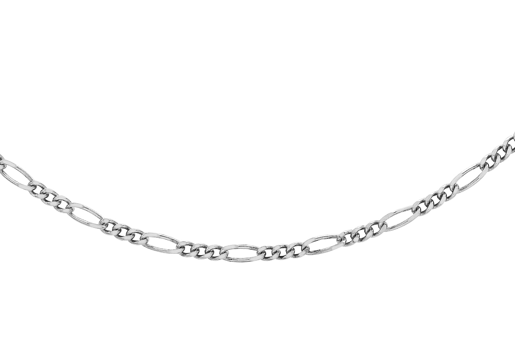 9ct White Gold 50 Diamond Cut Figaro Chain