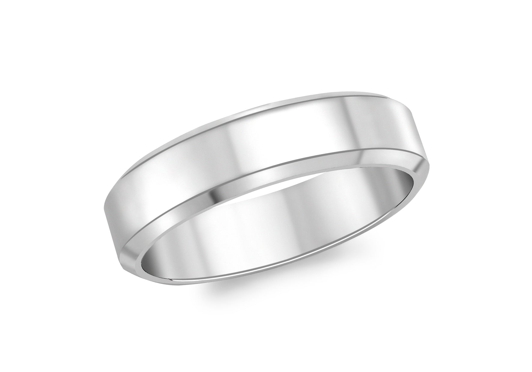 This band ring is crafted in fine white gold with clean bevelled edges that add subtle definition to its smooth profile. The polished finish enhances the cool brilliance of white gold, while the bevelled detailing provides a refined contrast against the flat central surface. Carefully balanced in proportion, the ring carries a timeless simplicity that makes it versatile and enduring.
