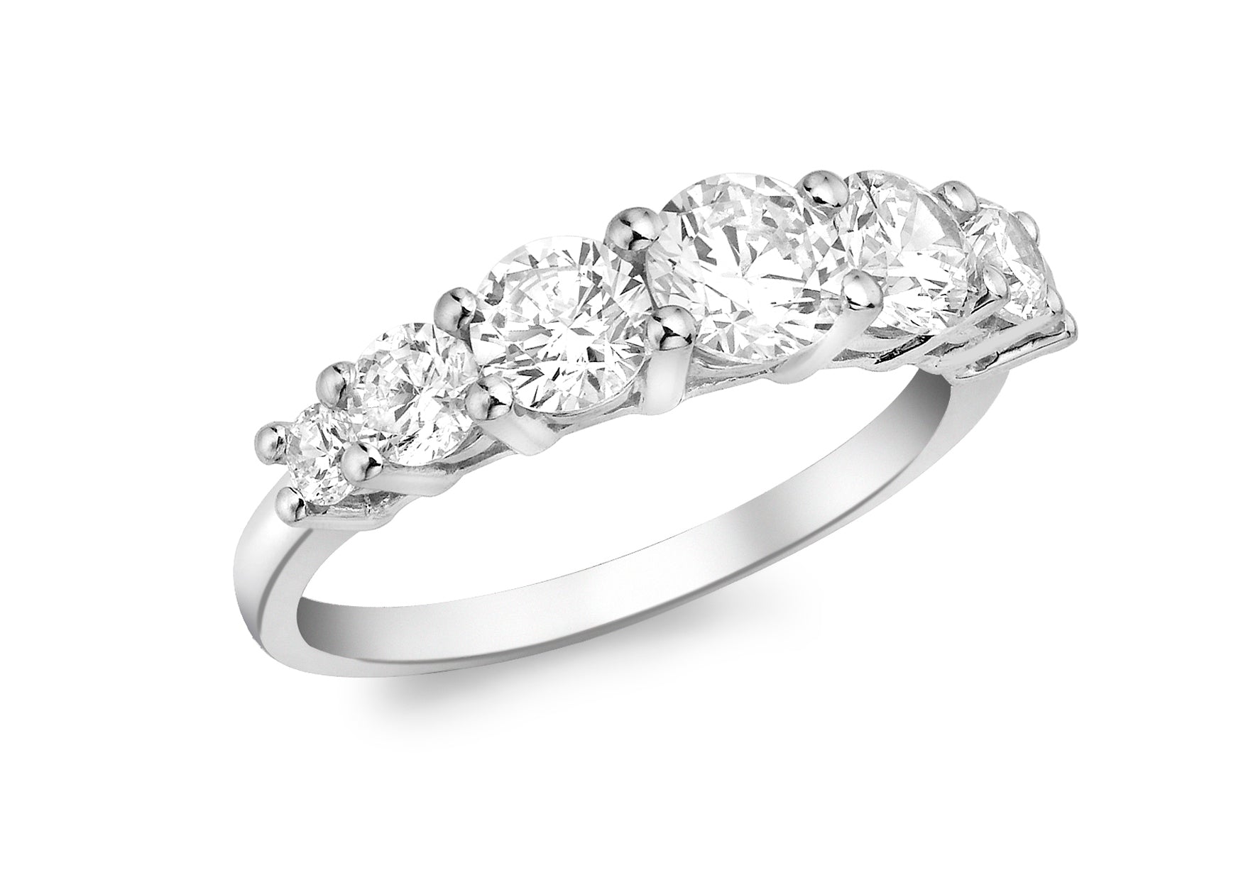 Ring Shank: 1.5mm Finish: Polished Setting: Claw Stone Details: 7 x 2mm-5mm Round White CZs Style: Stone Set Product Type: Rings Metal Colour: White Metal: 9ct Gold