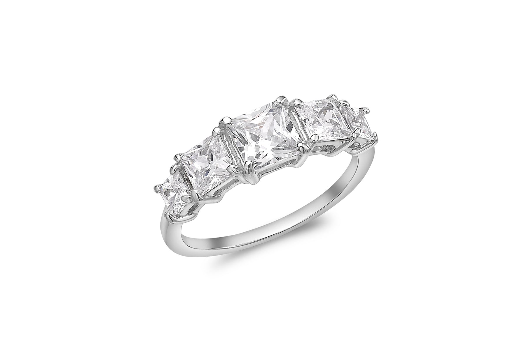 9ct White Gold Princess Cut White Zirconia Graduated 5-Stone Ring