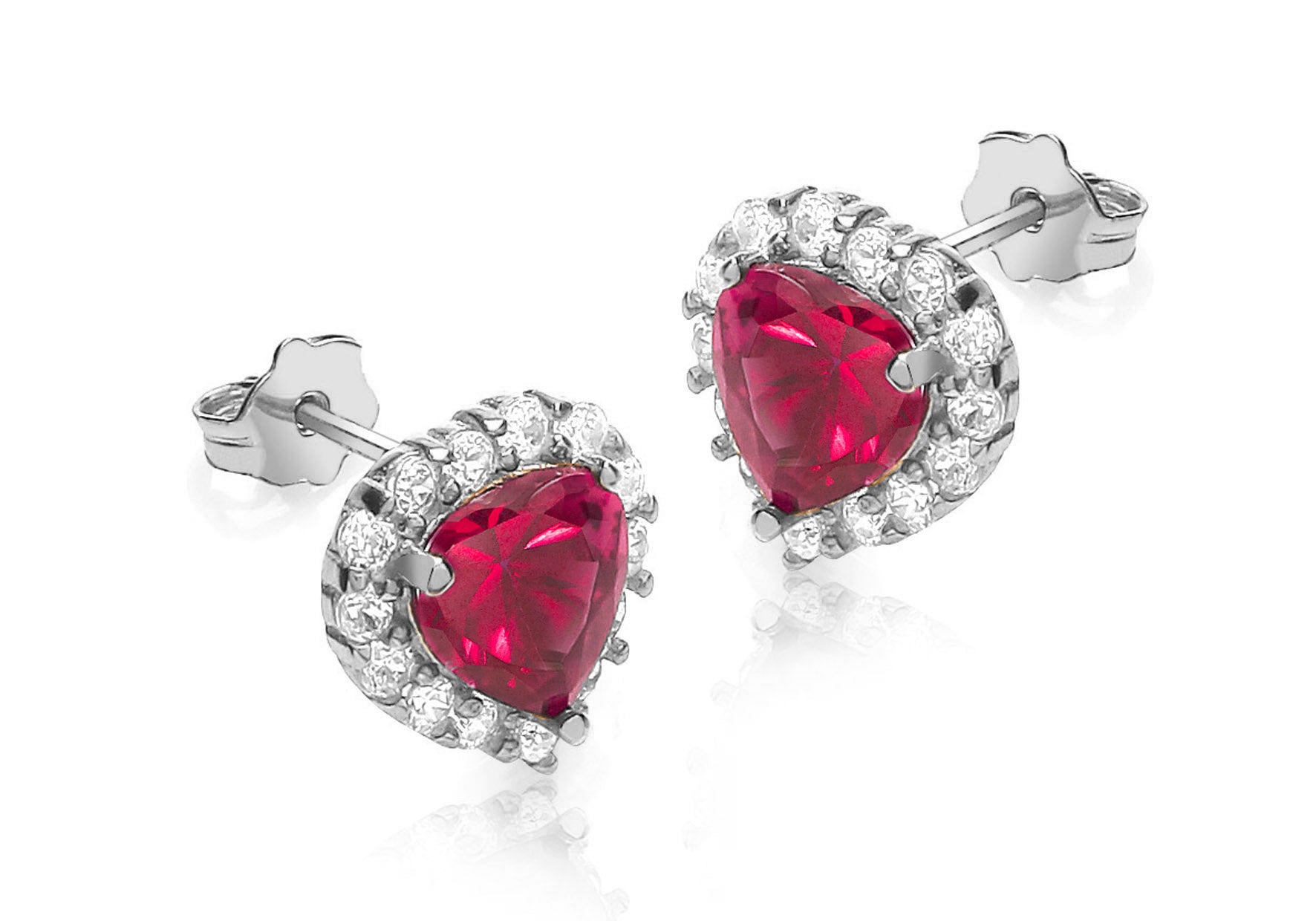 9ct White Gold Red and White Zirconia Heart Cluster Stud Earrings