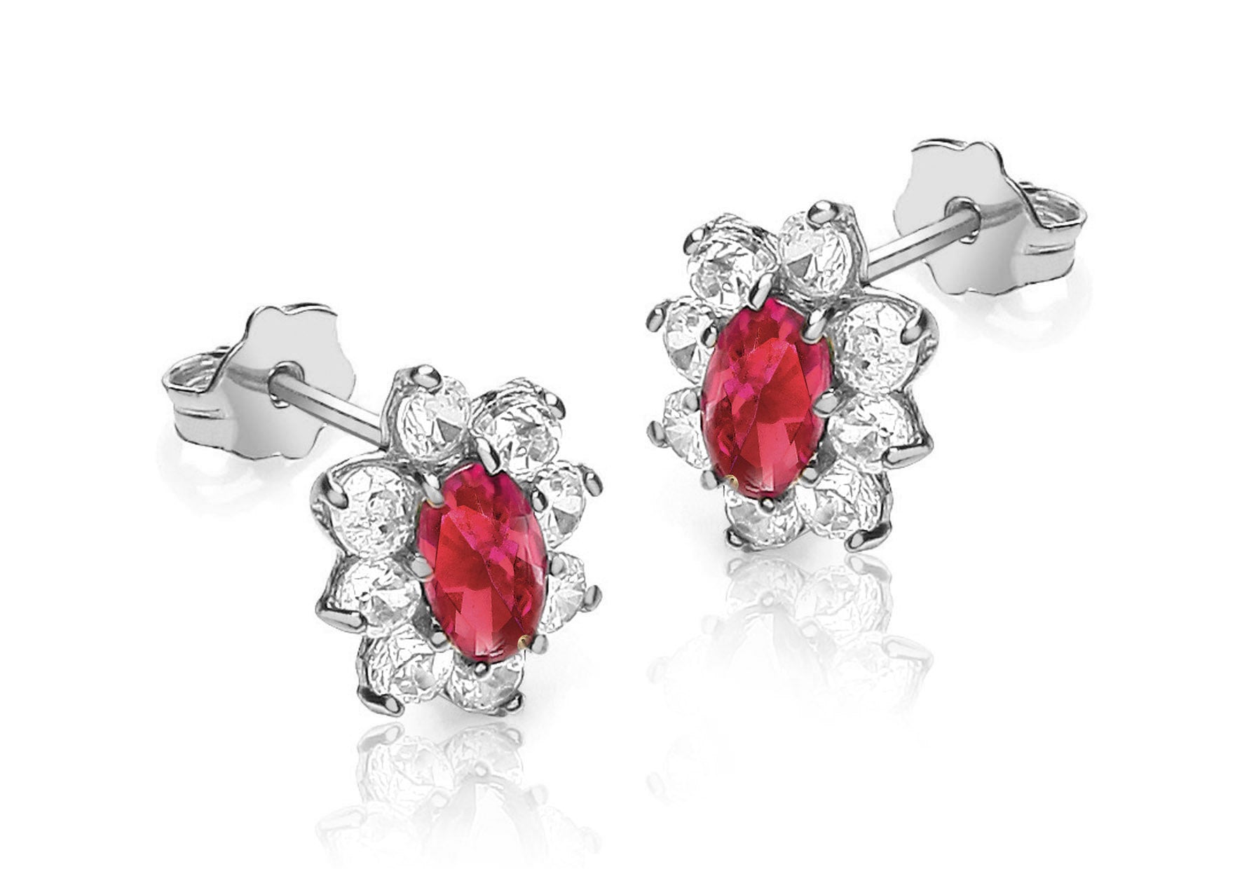 9ct White Gold Red and White Zirconia Stud Marquise Cluster Stud Earrings