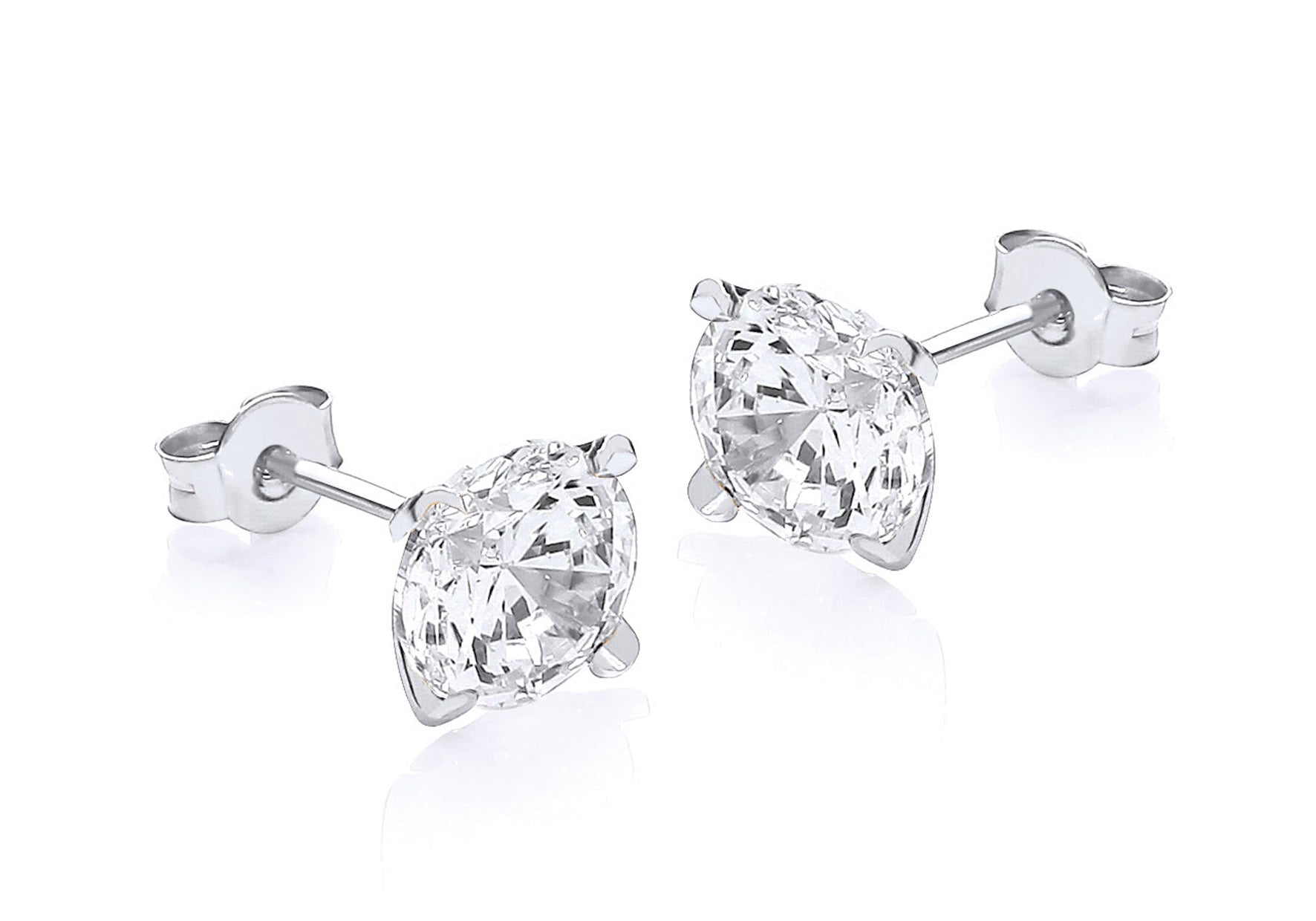 9ct White Gold Round Zirconia 8mm Stud Earrings