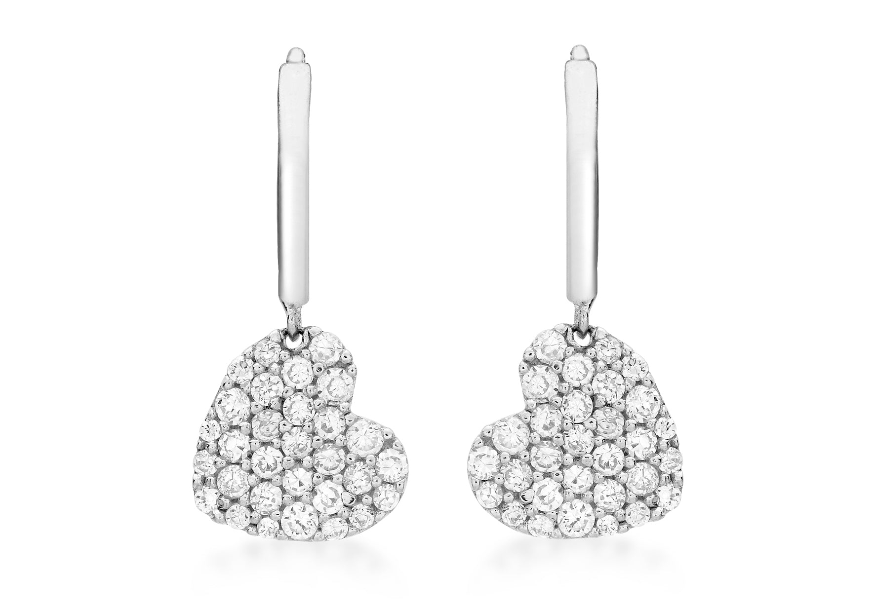 9ct White Gold Round Hoop Zirconia Heart Drop Earrings
