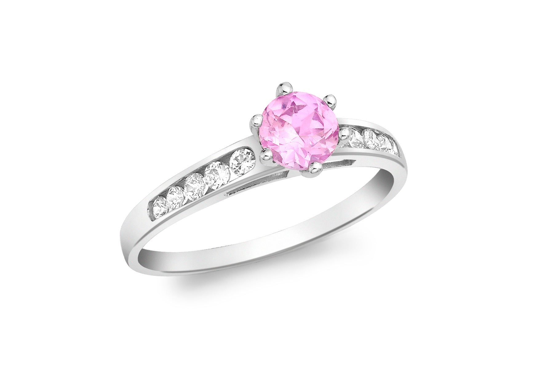 9ct White Gold White Zirconia Pink Solitaire Zirconia Ring