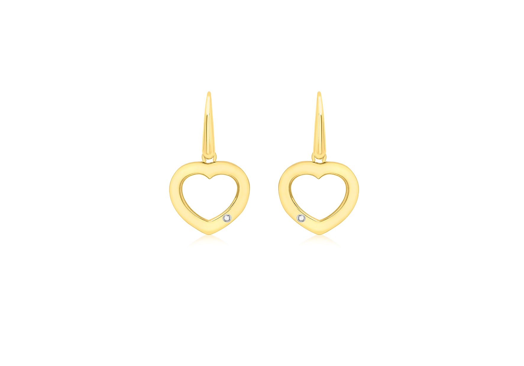 9ct Yellow Gold 0.02ct Diamond Heart Drop Earrings