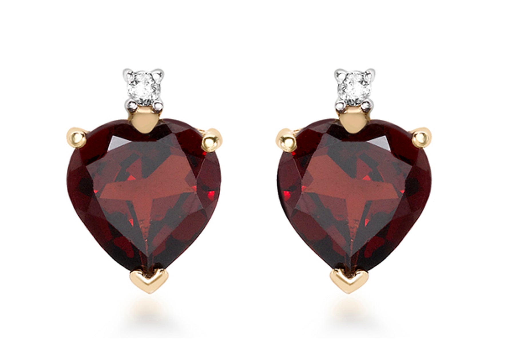 9ct Yellow Gold 0.03ct Diamond and Garnet Heart Stud Earrings