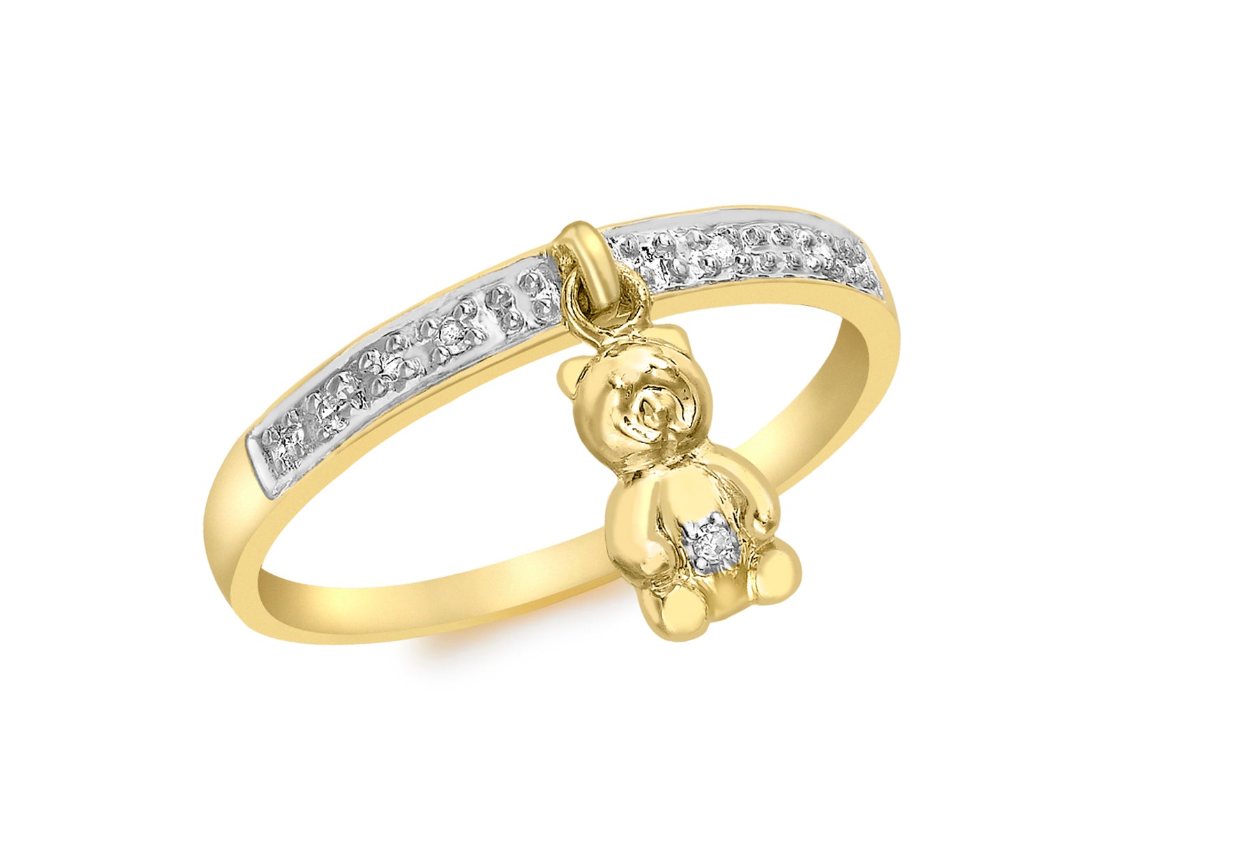 9ct Yellow Gold 0.03ct Diamond Drop Teddy Bear Ring