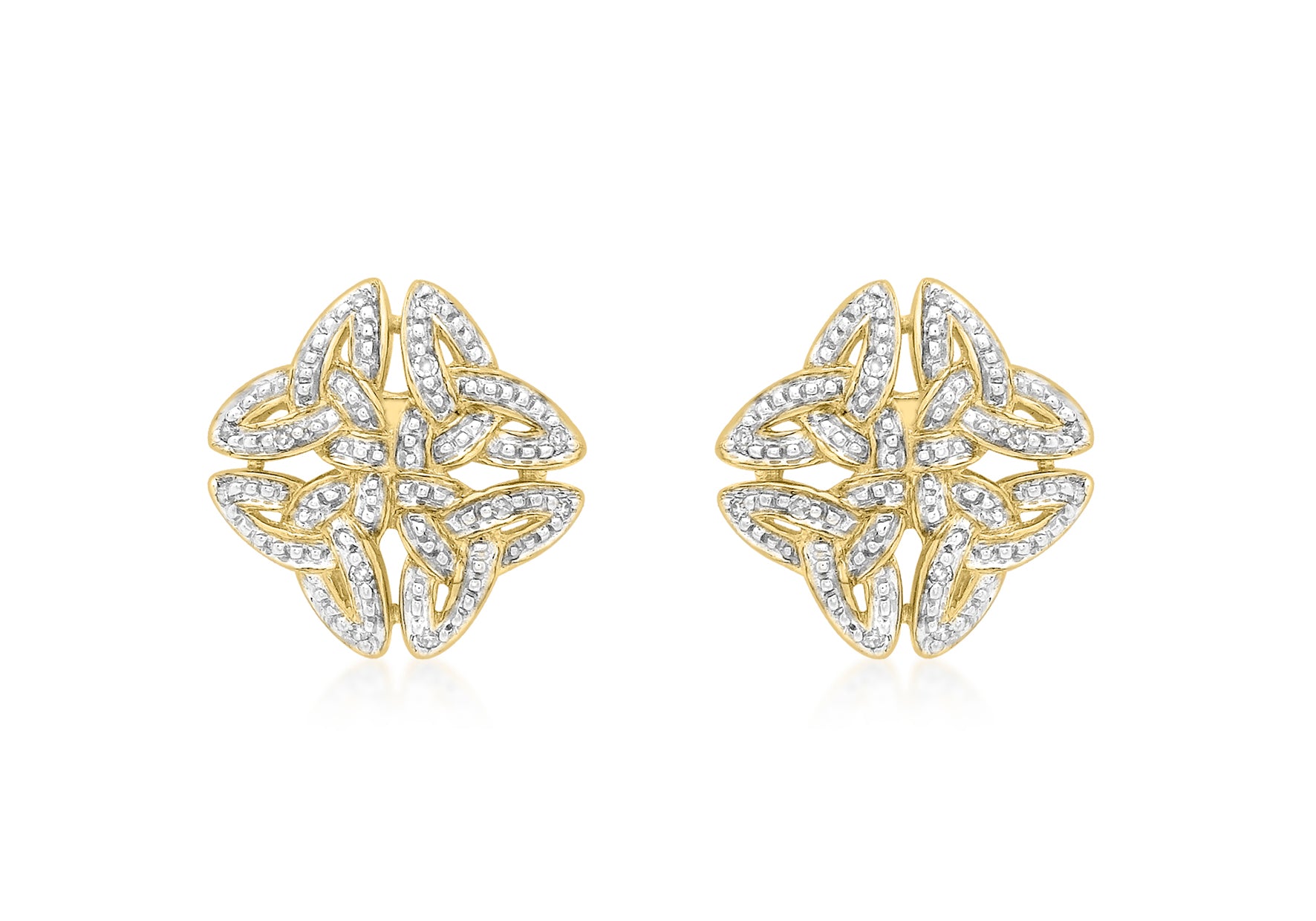 9ct Yellow Gold 0.10ct Diamond Celtic Cross Stud Earrings