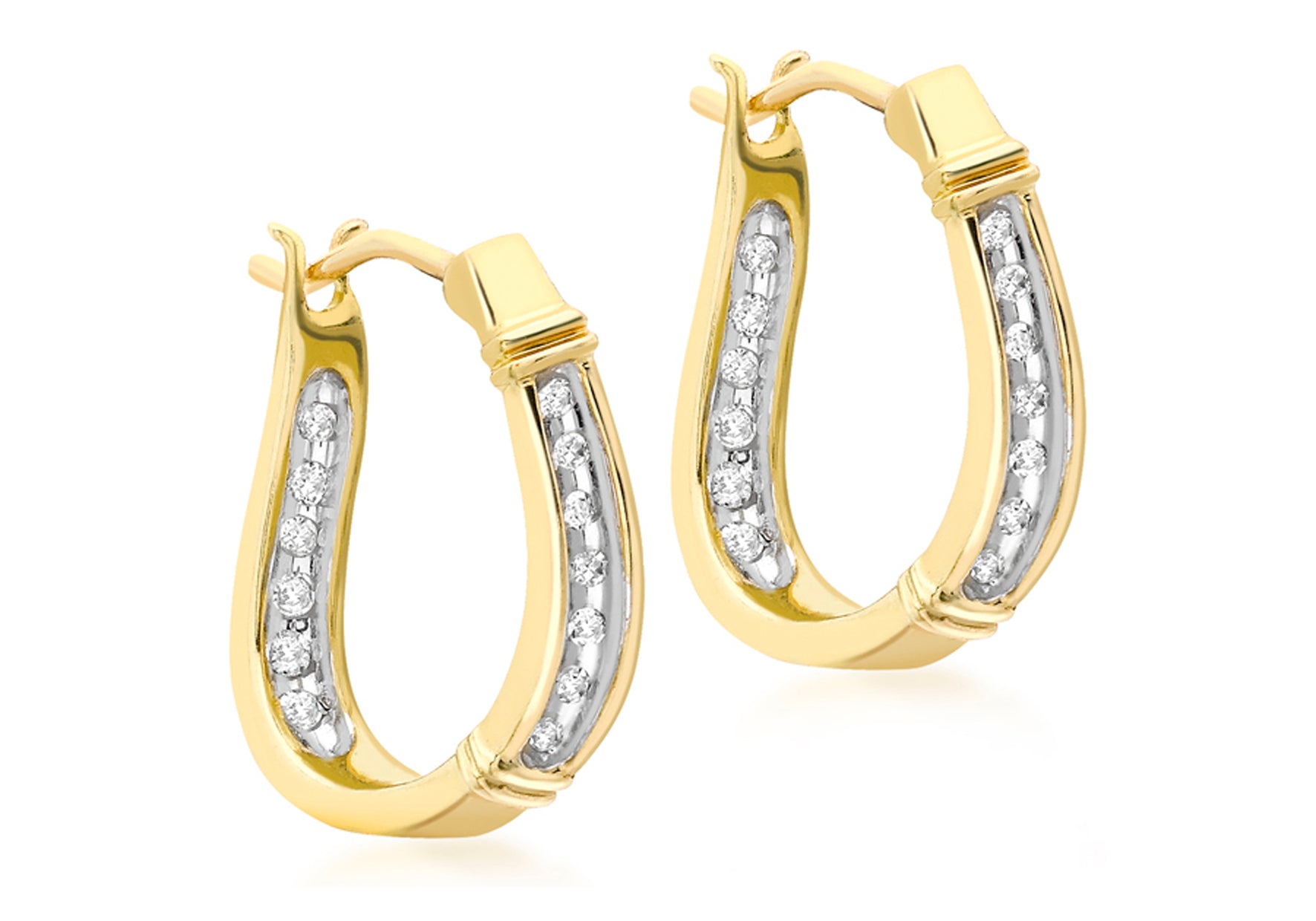 9ct Yellow Gold 0.12ct Diamond Wave Creole Earrings Average Carat Weight: 0.12ct; Height: 14mm; Fitting: Hinged Post; Setting: Channel; Style: Creole Metal Colour: Yellow Metal: 9ct Gold