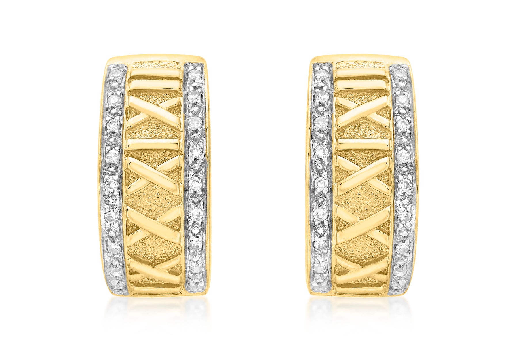 9ct Yellow Gold 0.16ct Diamond Roman Numeral Half-Band Earrings