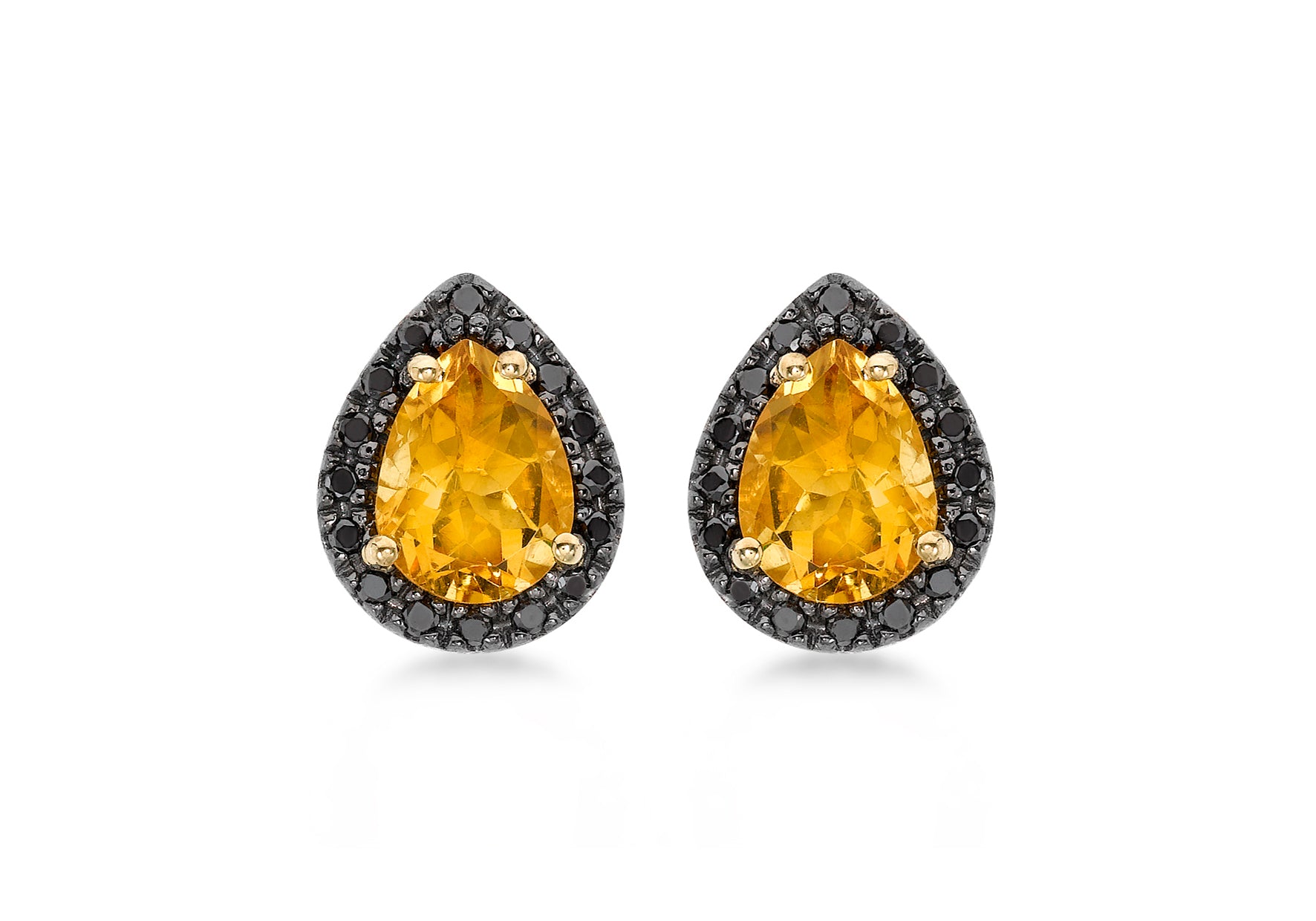 9ct Yellow Gold 0.23ct Black Diamond Teardrop Stud Earrings
