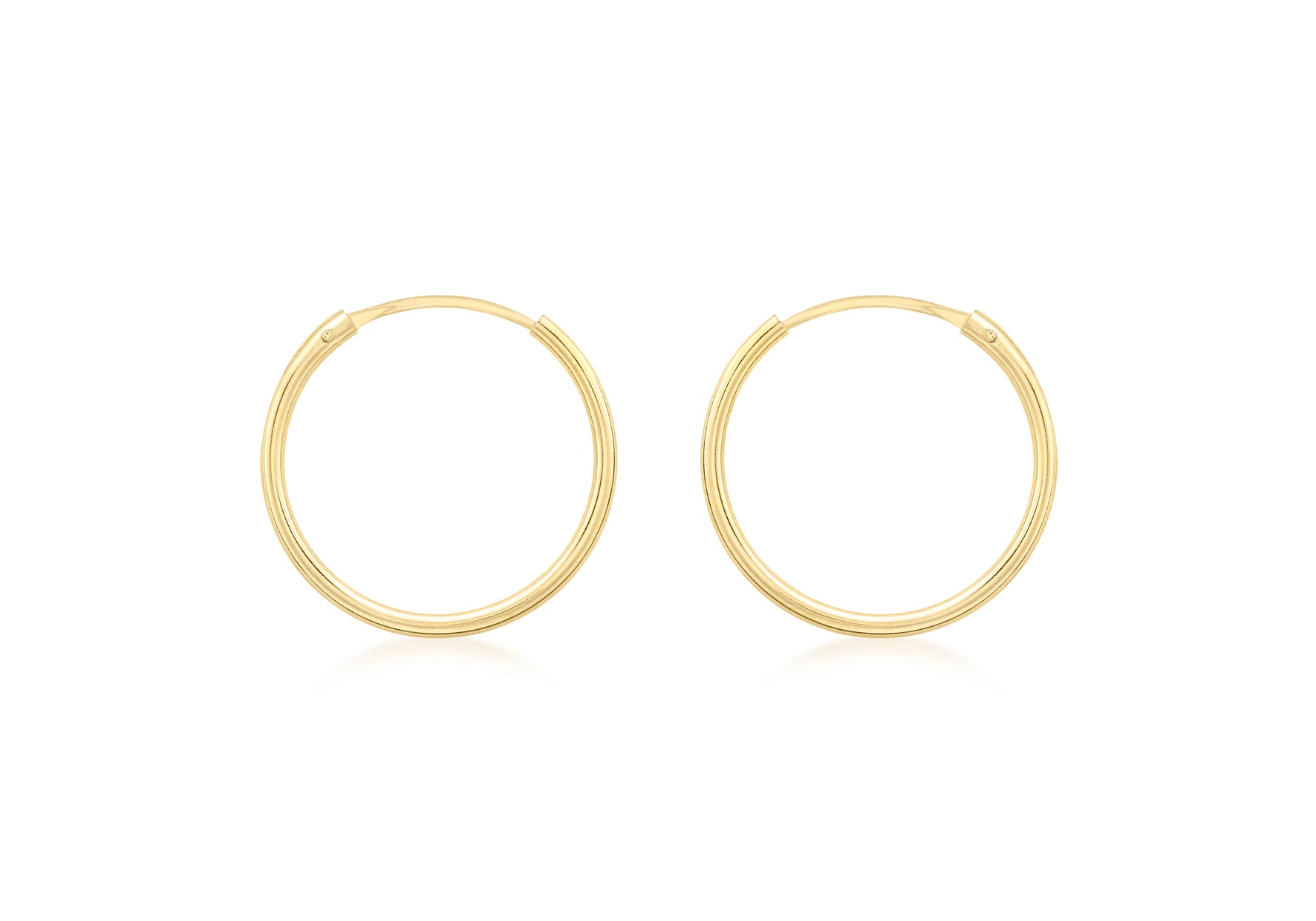 9ct Yellow Gold 15mm Sleeper Hoop Earrings Diameter: 15mm Fitting: Endless Hoop Style: Hoop Product Type: Earrings Metal Colour: Yellow Metal: 9ct Gold