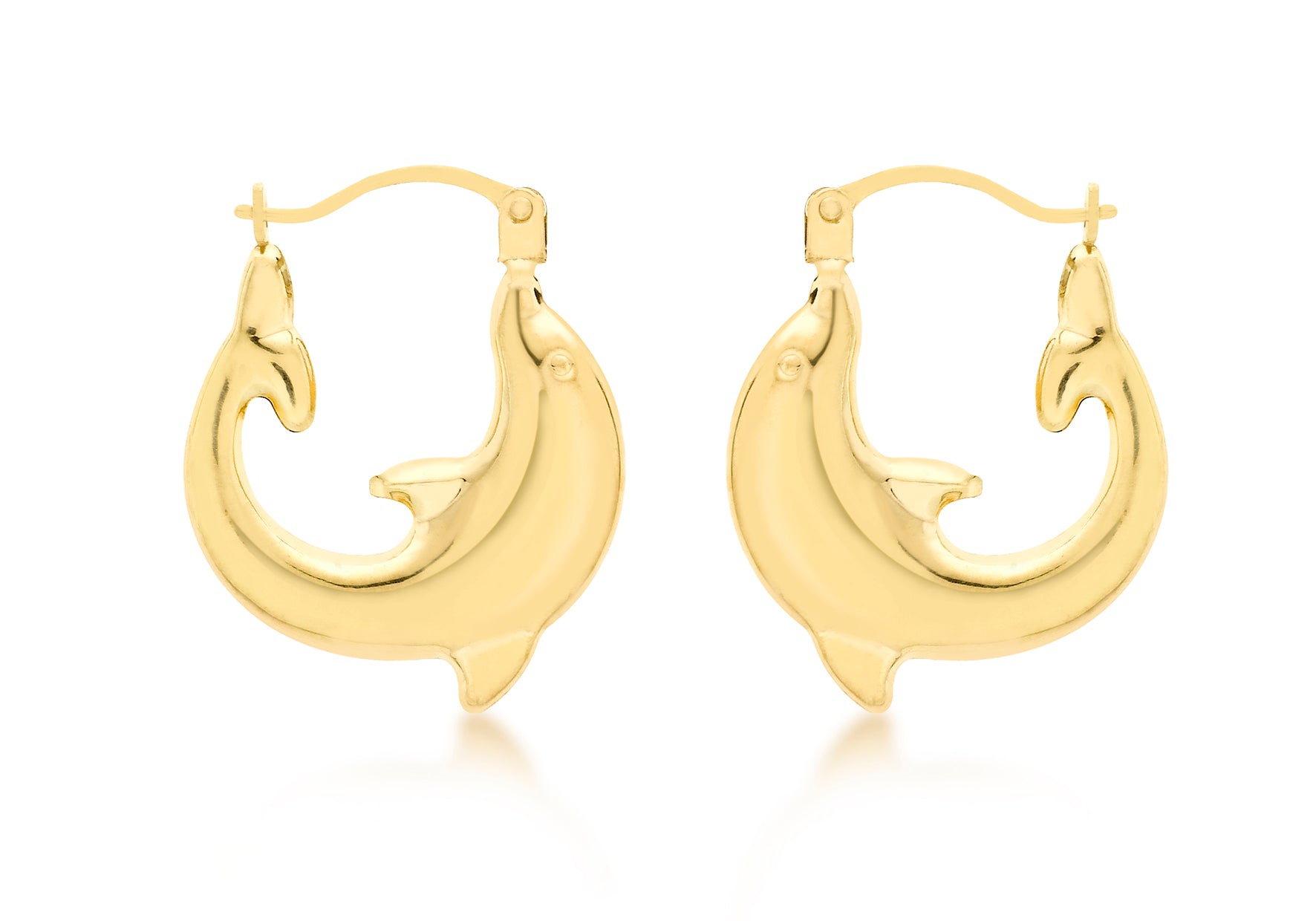 9ct Yellow Gold 16mm x 19mm Dolphin Creole Earrings Width: 16mm Height: 19mm Fitting: Hinged Post Style: Creole Product Type: Earrings Metal Colour: Yellow Metal: 9ct Gold
