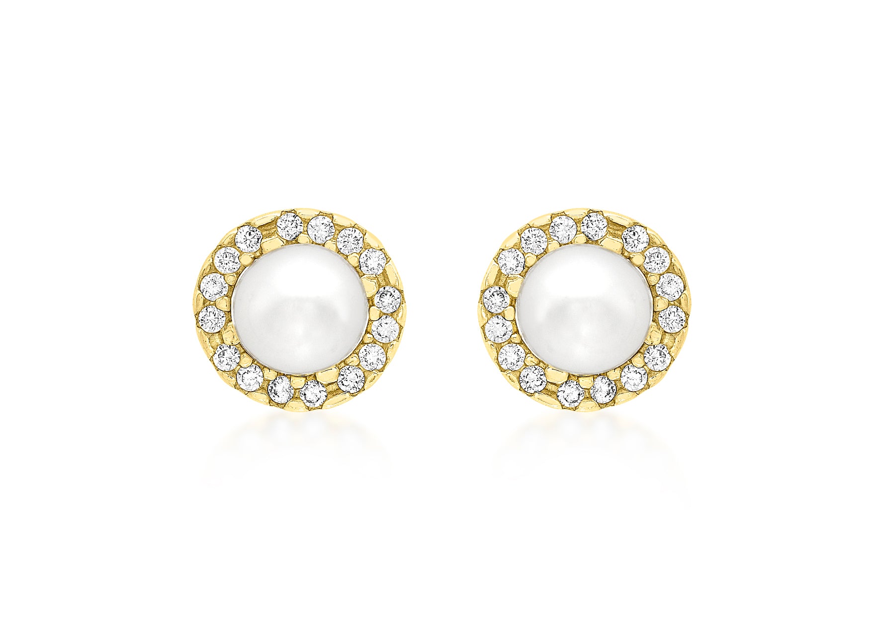 Diameter: 8mm; Fitting: Post; Setting: Pave; Stone Details: 5mm Pearl/1mm CZ Stones; Style: Stud Metal Colour: Yellow Metal: 9ct Gold