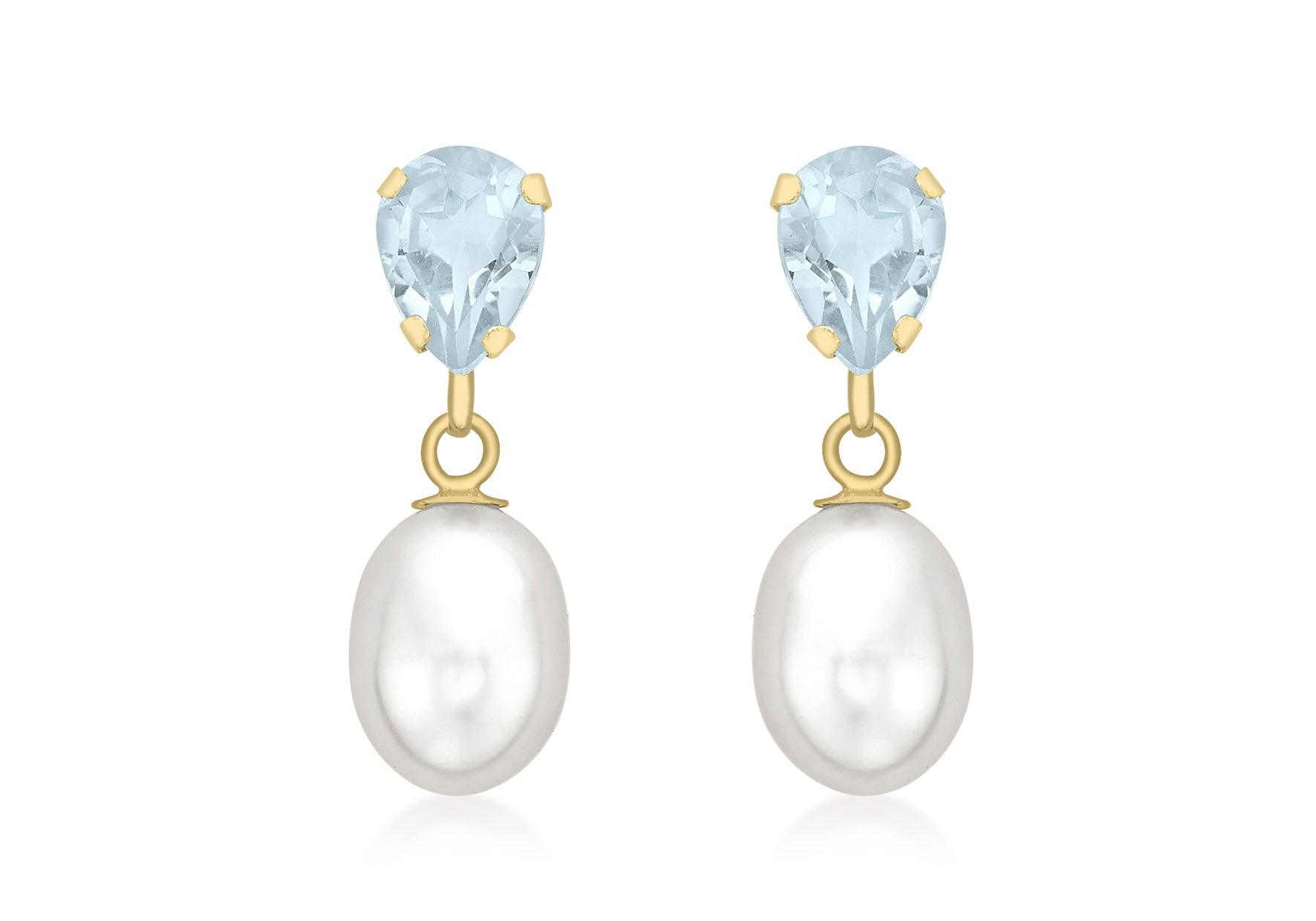 9ct Yellow Gold Blue Topaz and Pearl Teardrop Earrings