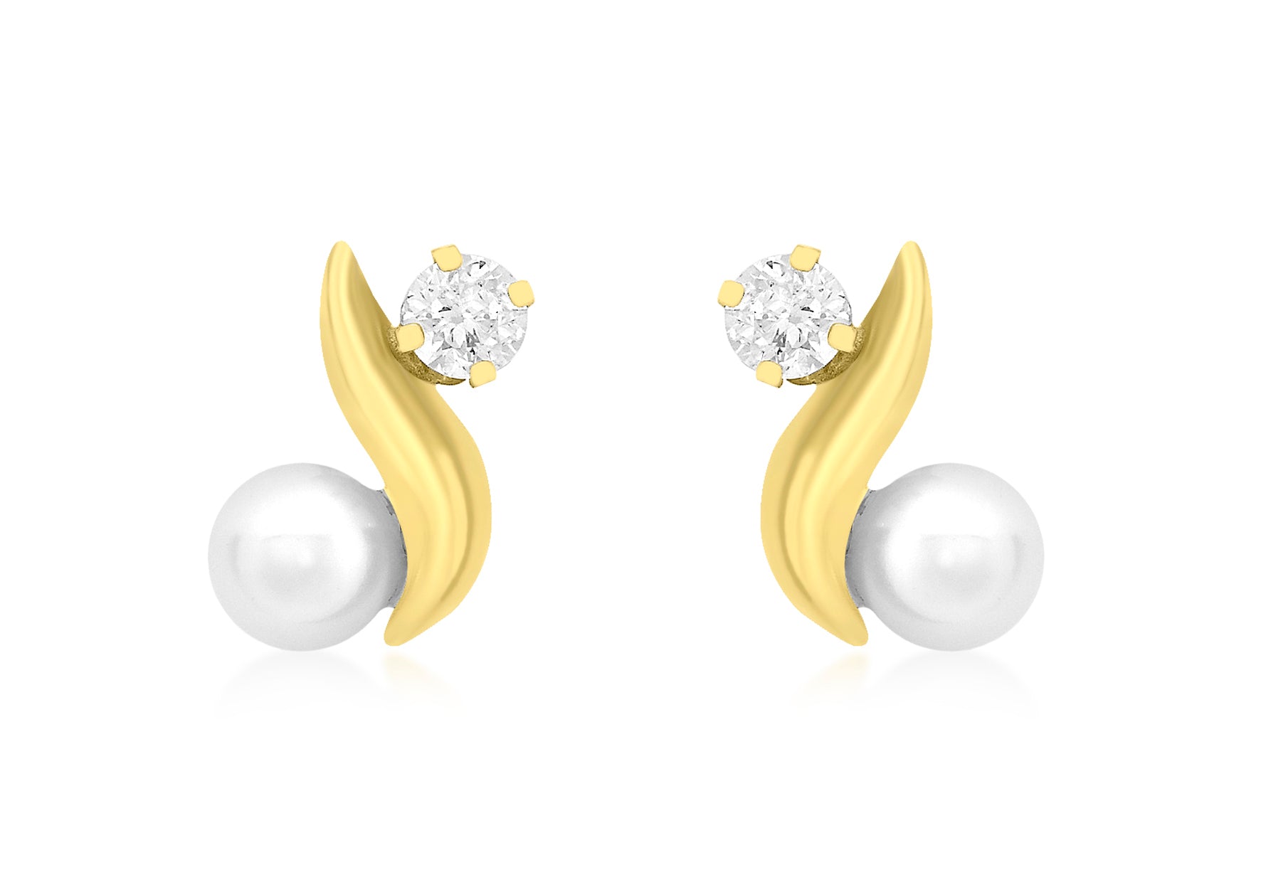 9ct Yellow Gold Zirconia & Pearl Kiss Stud Earrings