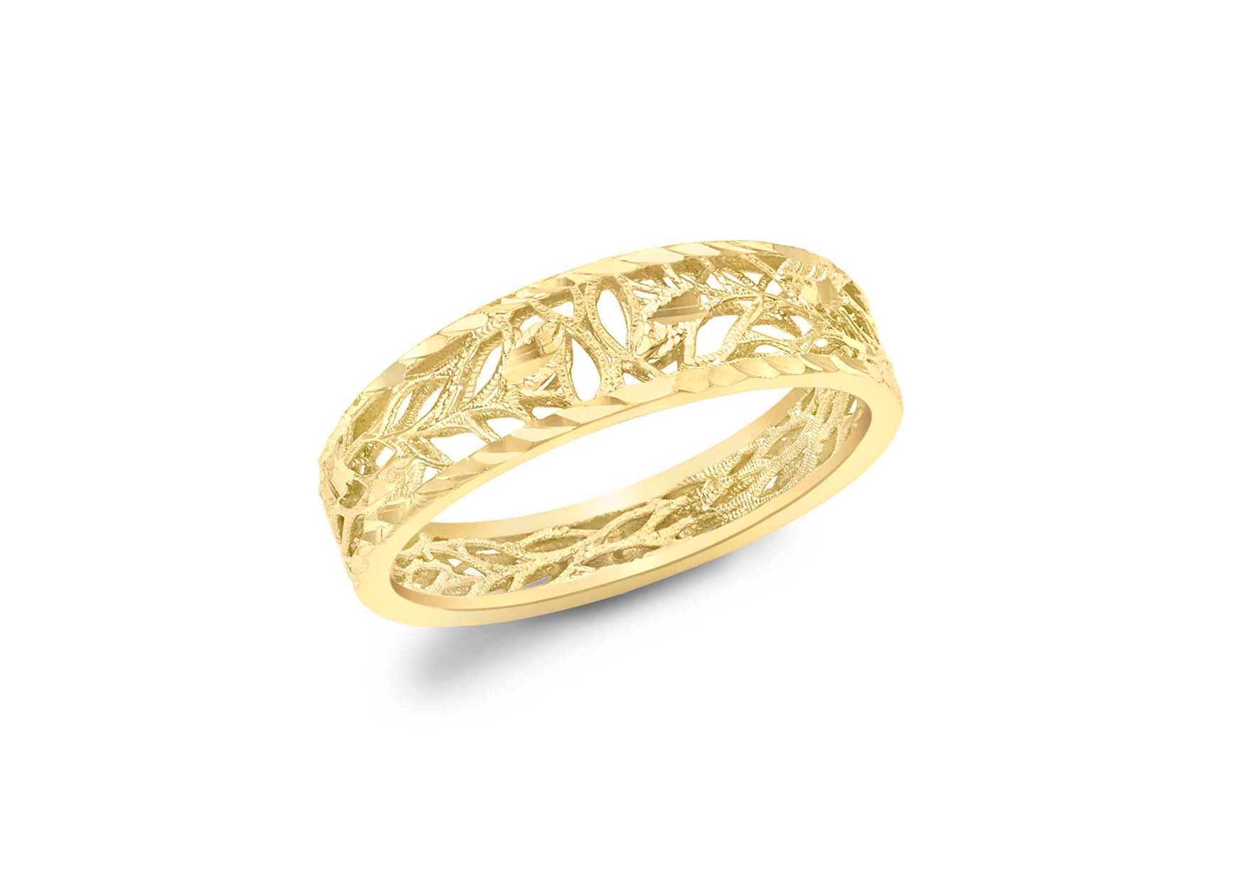 9ct Yellow Gold Diamond Cut Openwork Leaf Ring