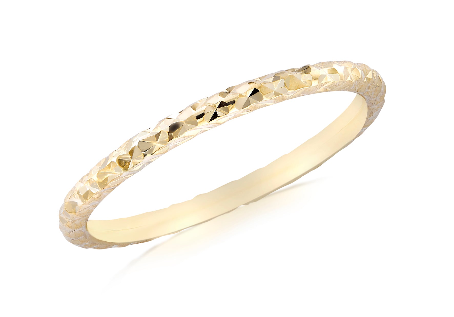 9ct Yellow Gold Diamond Cut Slim Band Stacking Ring