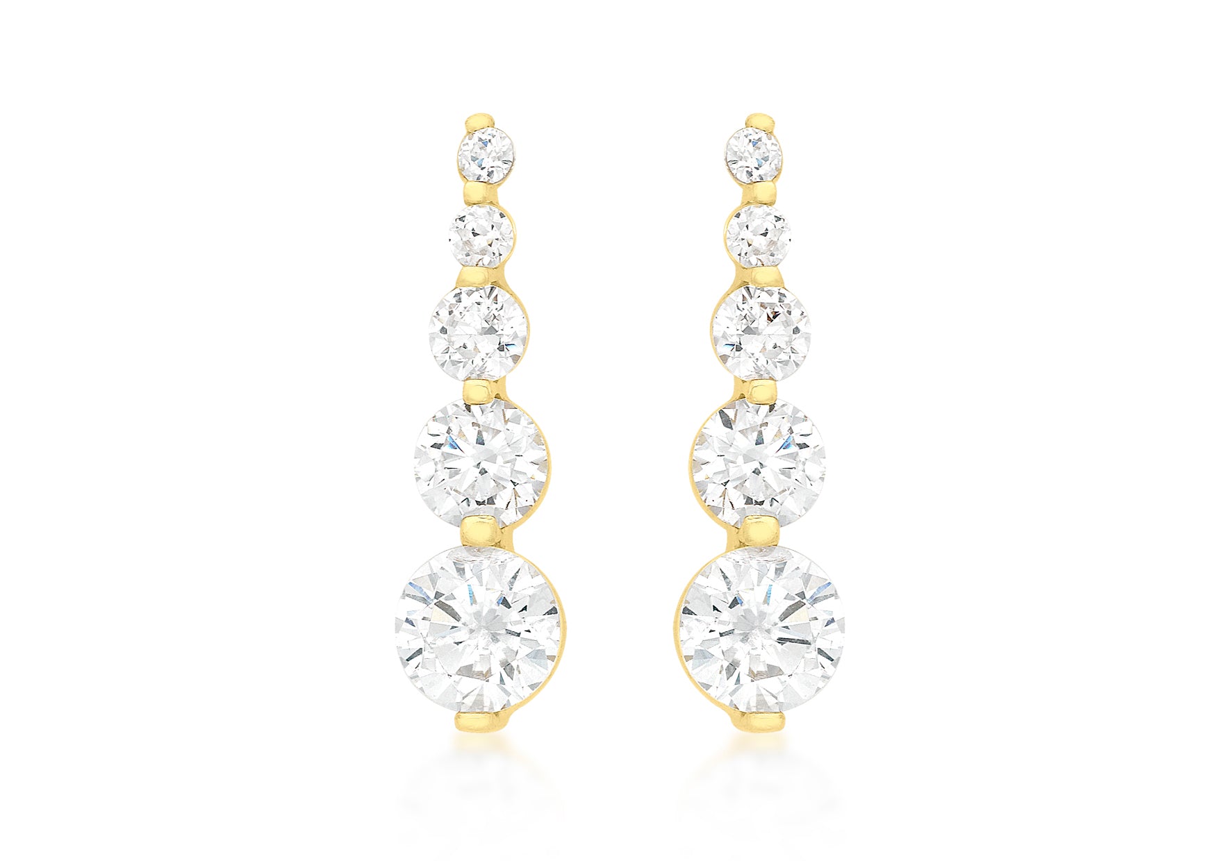 9ct Yellow Gold Graduated Round Zirconia Drop Earrings