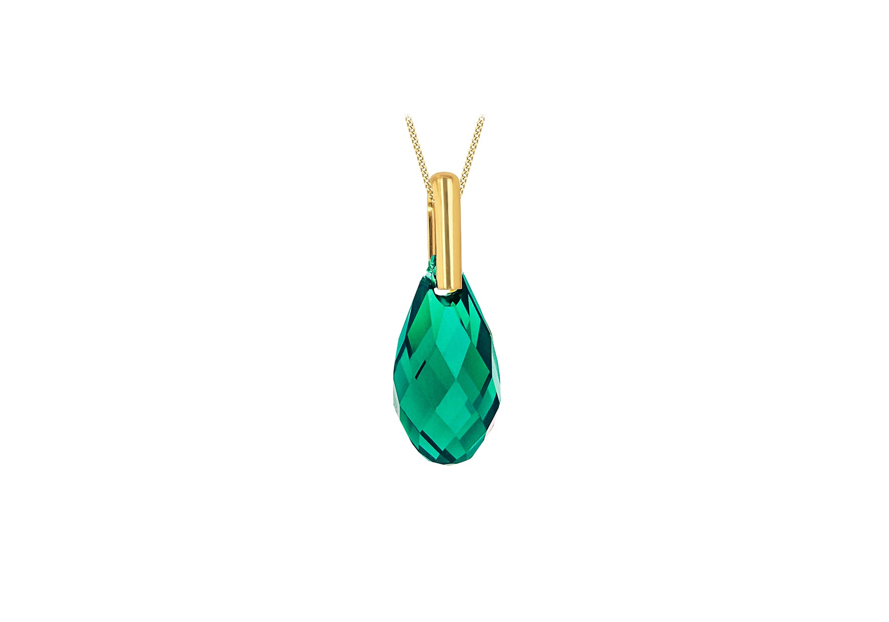 9ct Yellow Gold Green Swarovski Crystal Drop Pendant