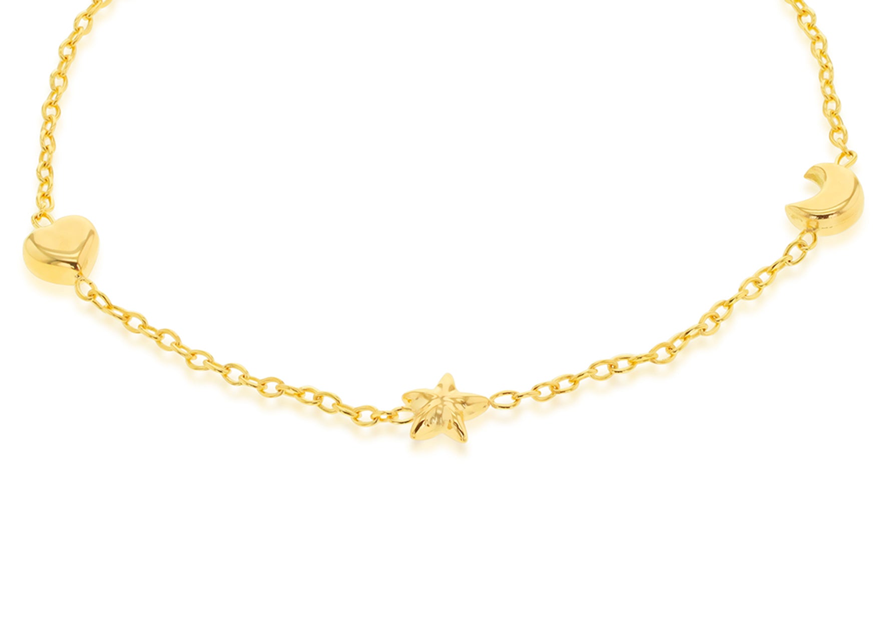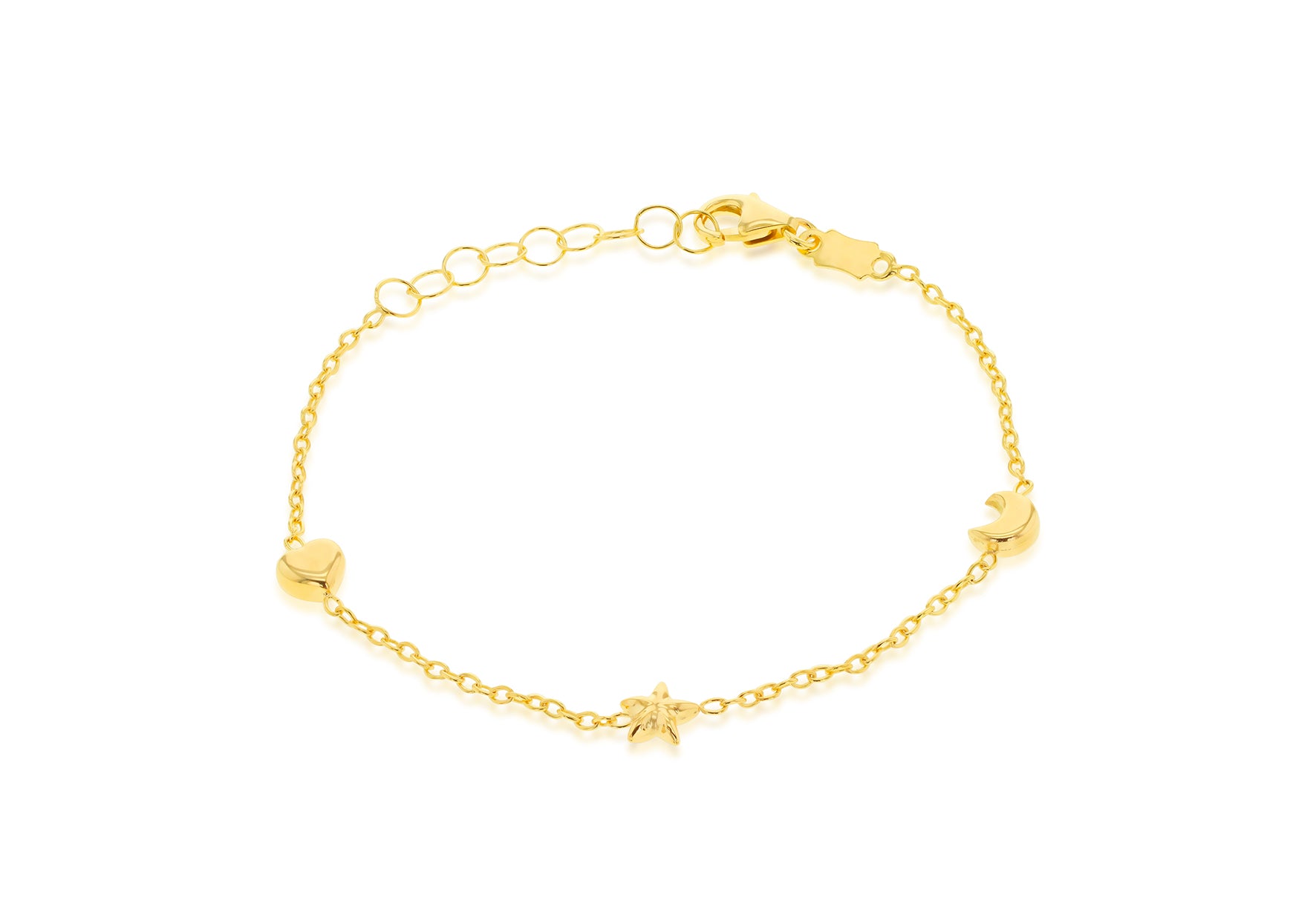 9ct Yellow Gold Moon Heart Star Charm Baby Bracelet