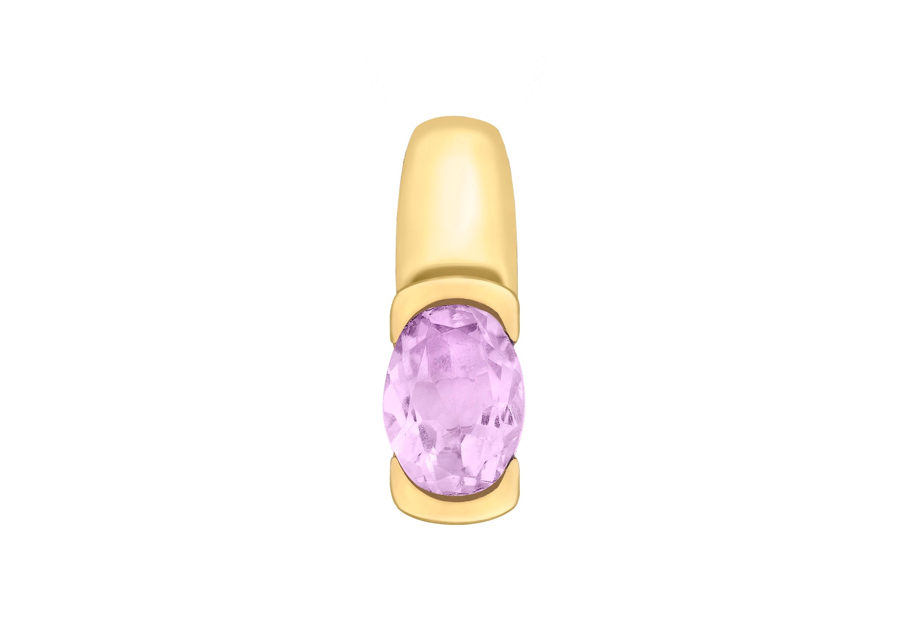 Pendant Height: Including Bail 14.7mm Pendant Width: 5mm Finish: Polished Stone Details: 1 x 5mm x 7mm Amethyst Style: Stone Set Product Type: Pendants Metal Colour: Yellow Metal: 9ct Gold