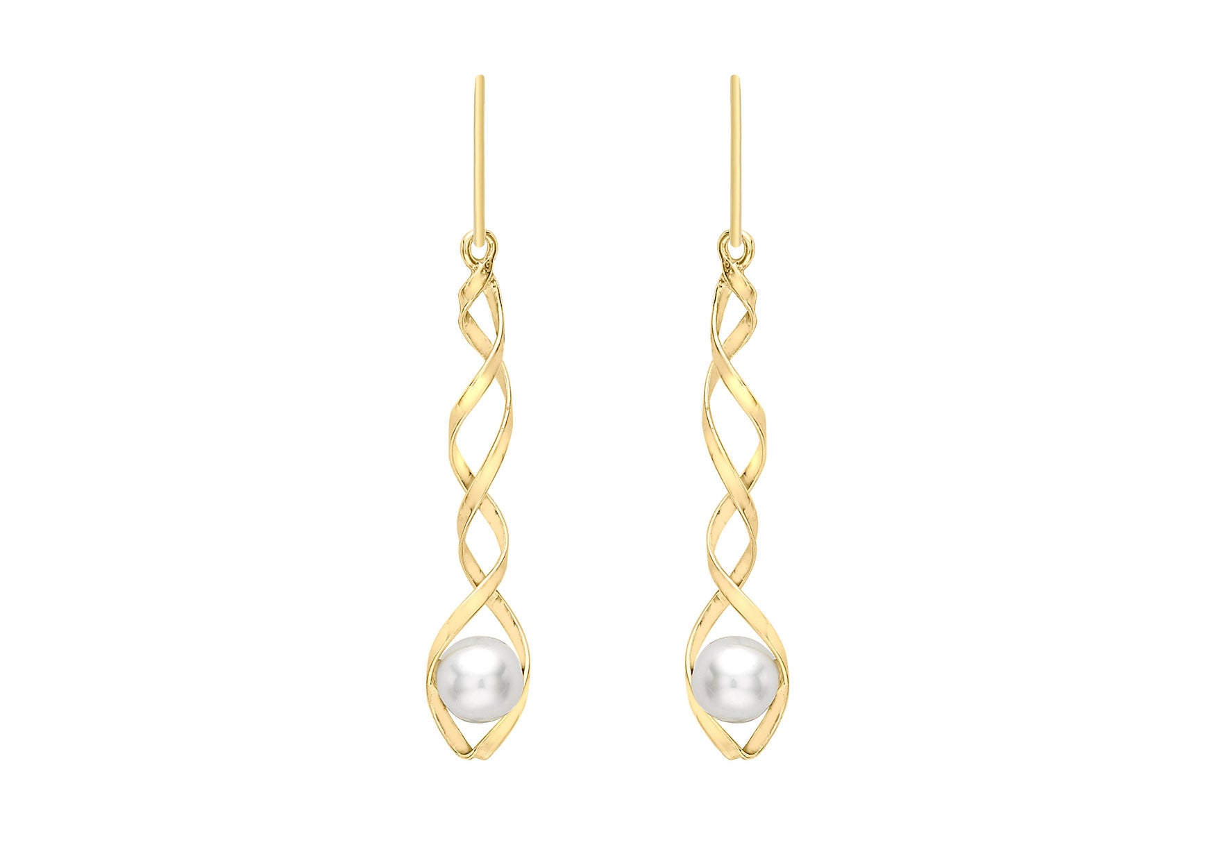 9ct Yellow Gold Freshwater Pearls Helix Drop Earrings