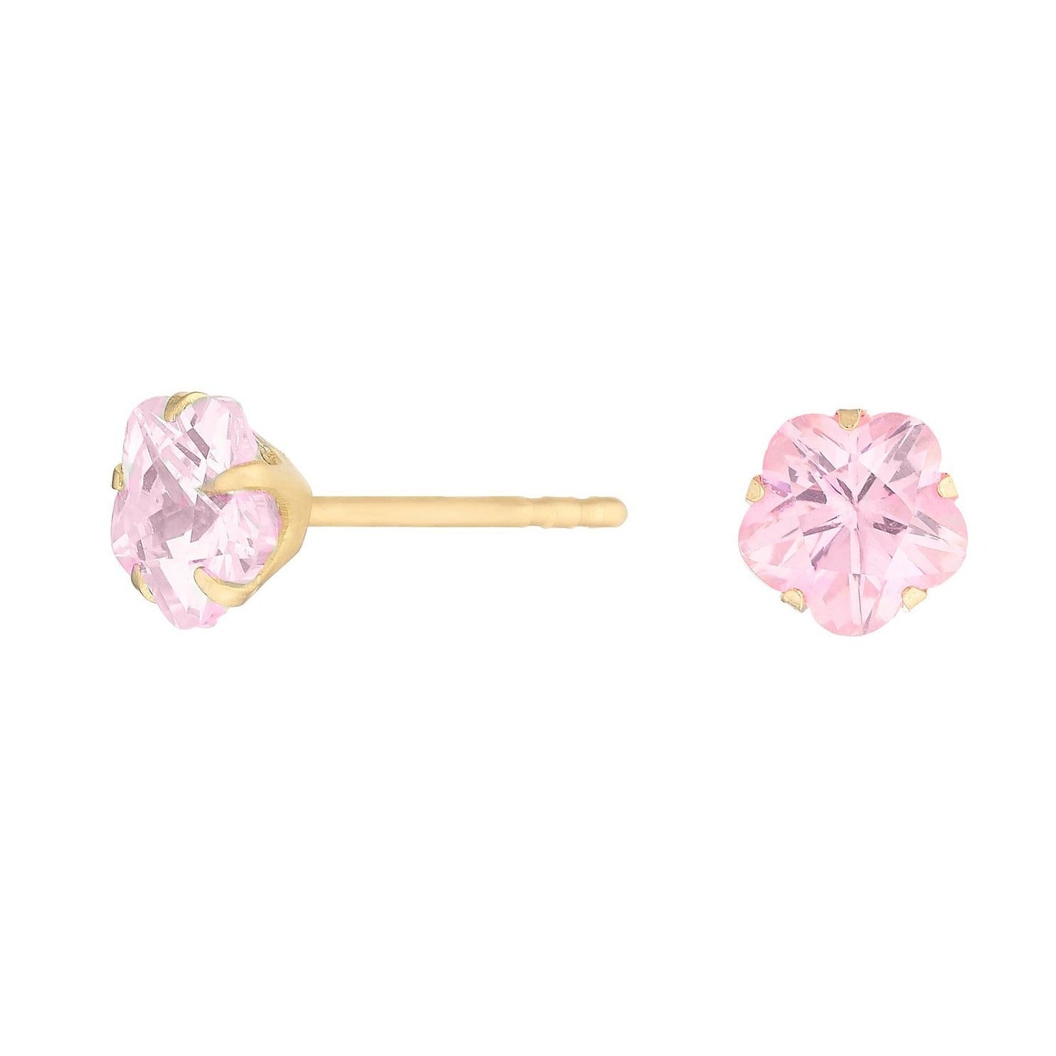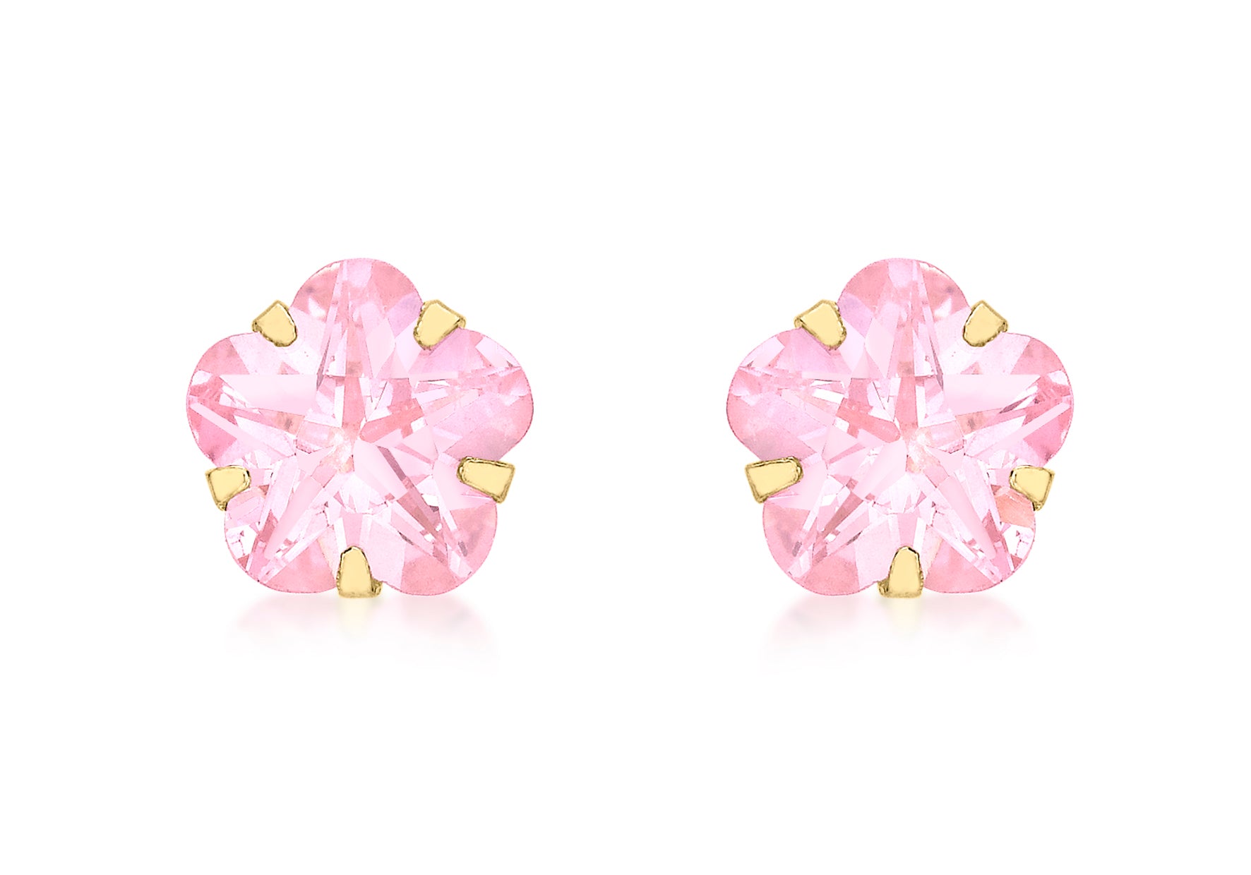 9ct Yellow Gold Pink Zirconia Flower Stud Earrings