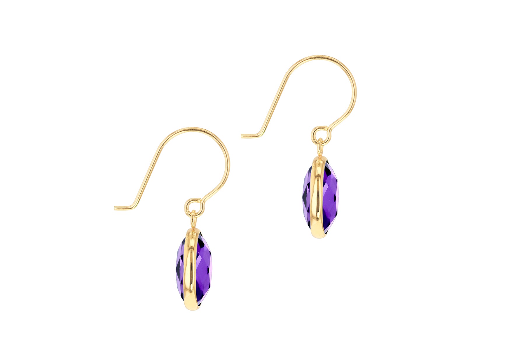 9ct Yellow Gold Purple Swarovski Crystal Drop Earrings
