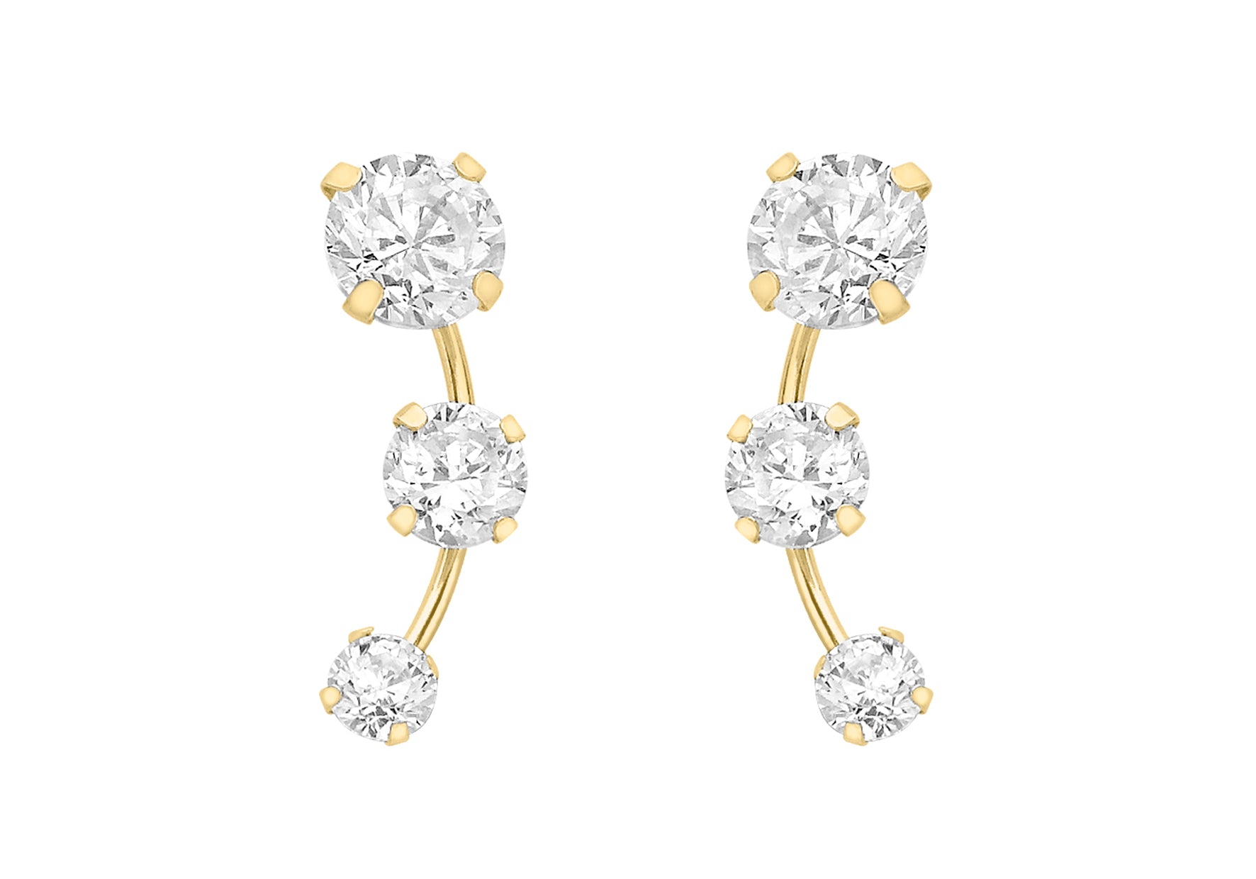 9ct Yellow Gold Triple Zirconia Graduated Curve Stud Earrings