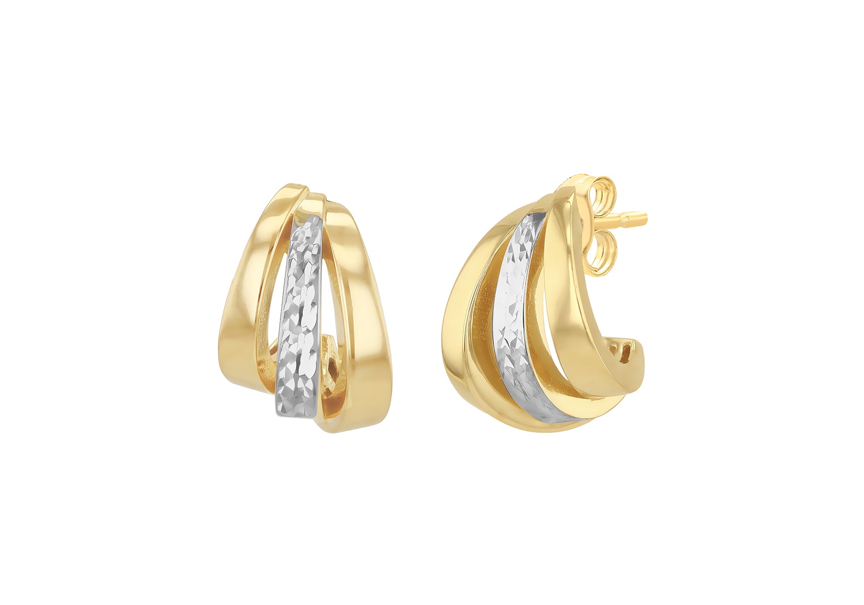 9ct Yellow Gold Two-Tone Gold Shell Hoop Stud Earrings