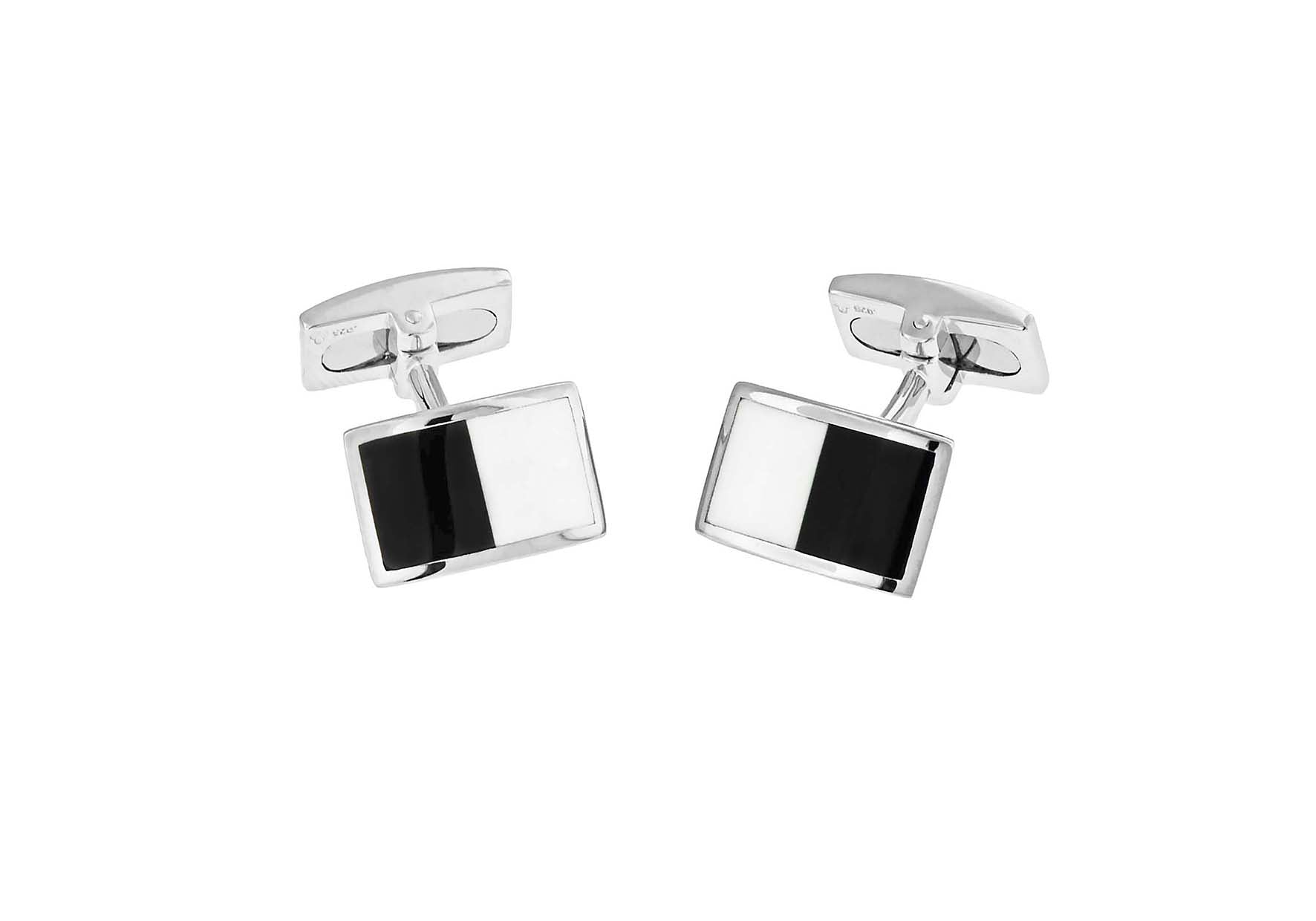 Hoxton London Men's Sterling Silver Black & White Agate Cufflinks