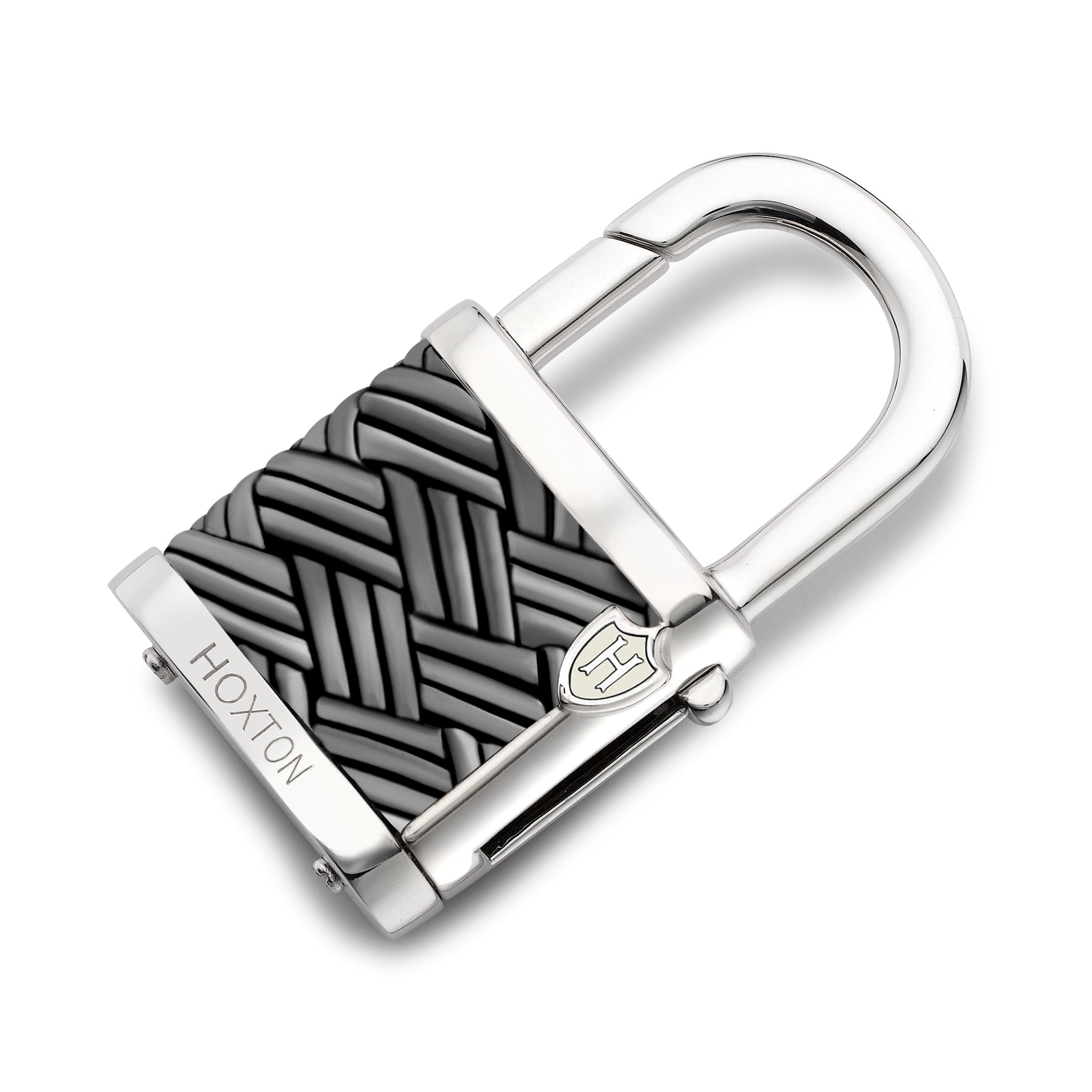 Hoxton London Men's Sterling Silver Bamboo Woven Leather Padlock Oxidised Keyring Width: 9mm; Style: Plain; Brand: Hoxton Men's Jewellery Metal Colour: Silver Metal: Silver