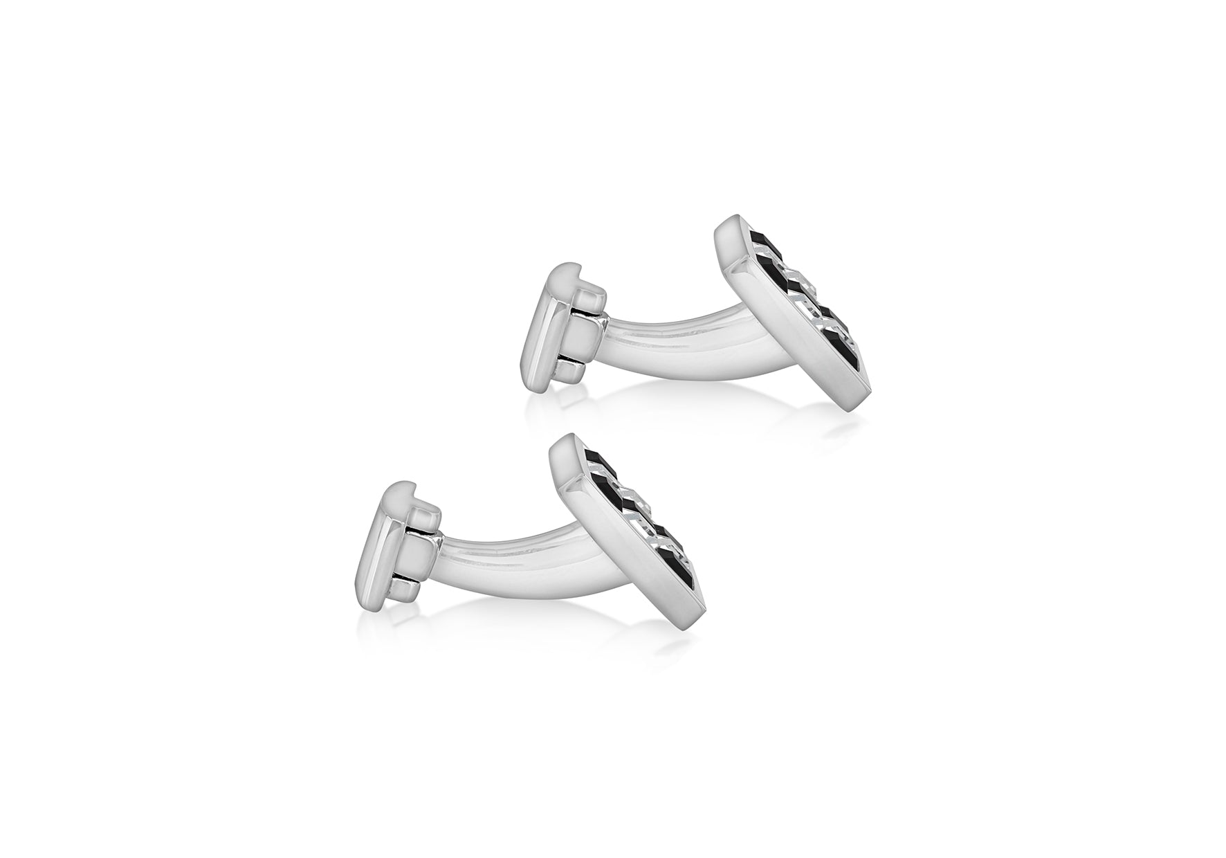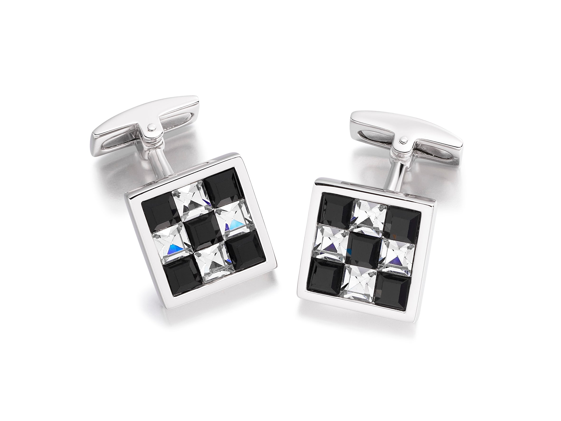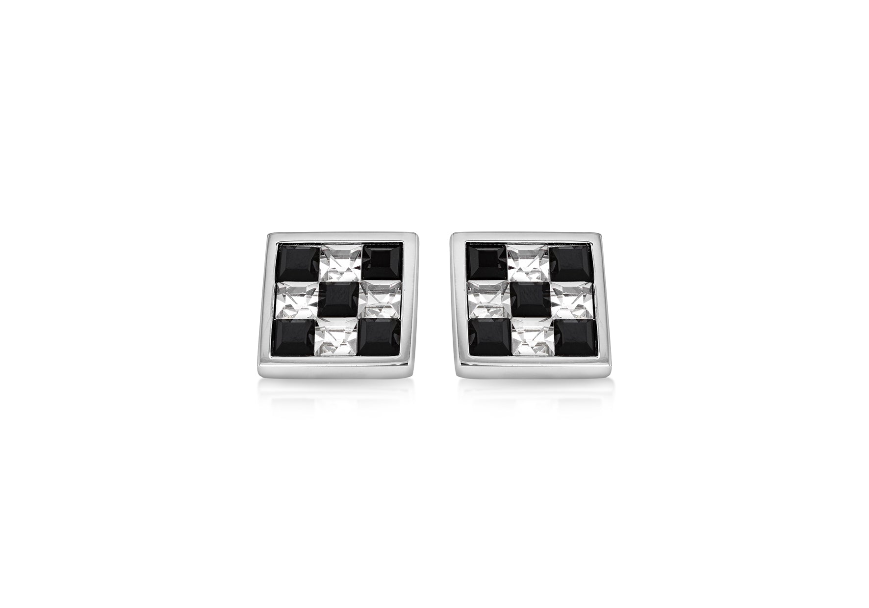 Hoxton London Men's Sterling Silver Black and White Crystal Chequerboard Square Cufflinks